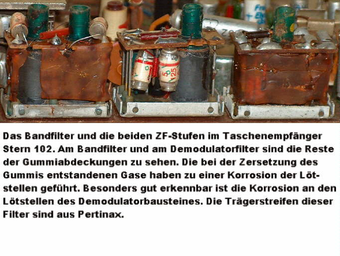 Seit dem vorigen Jahr habe ich wieder einen Taschenempfänger T101. Dieses kleine Gerät besticht auch heute noch mit seiner Empfangsleistung. Die Zellen R6 und die Batteriekammern des T100 waren eine Schwachstelle. Ebenso auch der auf dem Wellenbereichsschieber aufgelötete Mischtransistor. Ansonsten hat sich das Gerät als ein reparaturarmes Radio präsentiert. Defekte Elkos und Scheibenkondensatoren mit Feinschlüssen waren erst ab Mitte der siebziger Jahre Ursache für Geräteausfälle. Besonders beliebt waren die roten Scheibenkondensatoren. In meinen Schaltungen und Geräten habe ich diese nur im Notfall eingesetzt. Viele davon sind im Zustand ungebraucht von mir verschrottet worden. Ähnlich wie auch die Gewaplastkondensatoren, die ohne "wenn und aber" ausgetauscht wurden.