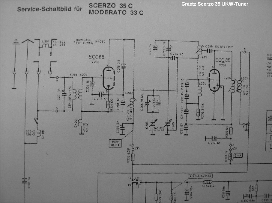 auch Du hast Recht. Im Anhang für alle ein Schaltungsausschnitt des Graetz Scerzo 35 (UKW-Tuner) zum Mitleben. Tatsächlich weicht diese Schaltung von "gängigen anderen" ab, so daß die alte Trimmweisheit hier scheitert. Zugegebenermaßen habe ich mich vorschnell irritieren lassen - sorry!
