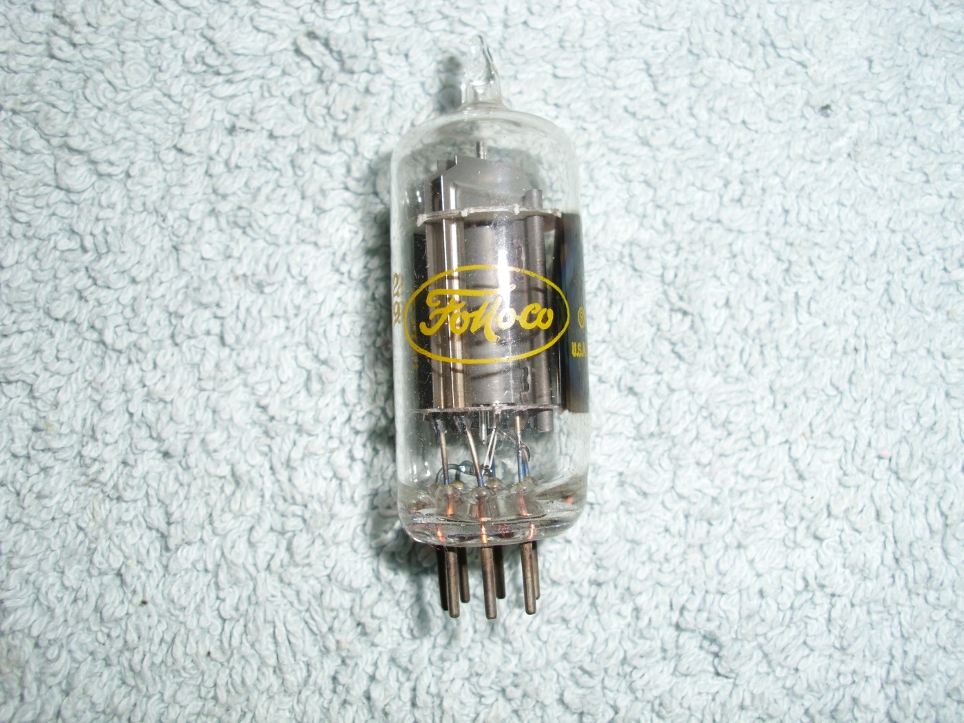Die Röhre auf den dritten Bild hat folgende Bezeichnung 12EL6 D7A. Fomoco ist der alte Ersatzteilname von Ford. (Fo)rd (Mo)tor (Co)mpany. Daher geh ich mal davon aus das es sich um eine Röhre aus einem Autoradio handelt. Die Röhren im rechten Karton sind nach dem was ich bei Wüstens gesehen hab 12Volt Röhren. Also warscheinlich auch aus den Automobilbereich. Im linken Karton sind normale Röhren die ich för meine anderen Geräte brauchen kann