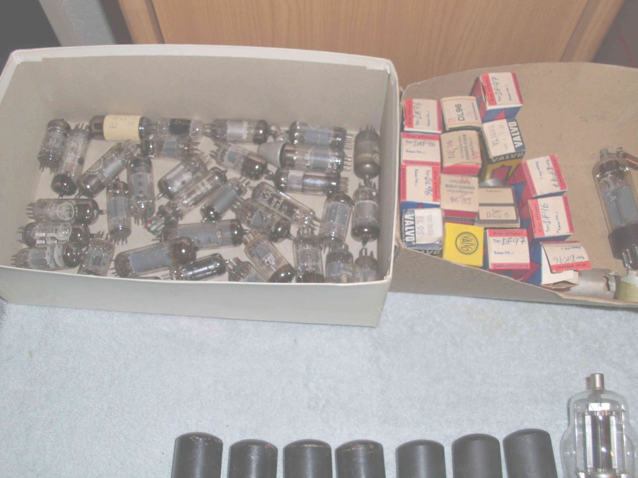 Die Röhren lagen schon lange da im Regal rum. Ich hab sie mitgenommen weil sie so wie es aussieht neu sind. Die US Röhren will ich tauschen oder verkaufen da ich seit längerem einen Braun BSK 238 D hab der noch gemacht werden muß. Da ist mindestens eine Röhre hin. Da klapperts drinn wenn man sie bewegt. Rainer hatte mir mal angeboten die anderen zu prüfen aber wenn sie alle hin sind muß ich ja neue haben.