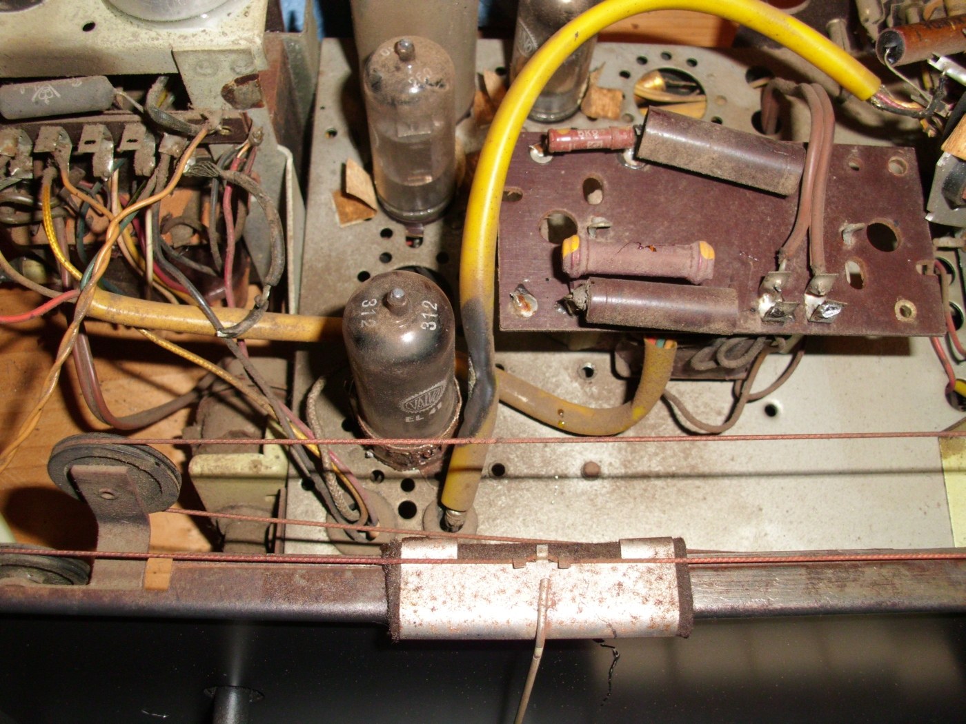 Ich hab mich gestern und heute etwas mit dem Nordmende beschäftigt. Nachdem das Chassie aus dem Gehäuse war hab ich noch etwas gefunden das wohl nicht mehr so gut war, die Leitung zum Auge. Sie lag an einer Röhre und sah angekokelt aus. Einen Kondensator mit den Originalwerten hab ich leider nicht bekommen. Der den ich jetzt drinn hab hat nicht zweimal sondern dreimal 50 Mikrofarad. der rest der Werte stimmt Ich hab ihn da nicht zum schrauben etwas Unkonventionell befestigt, aber ich denke mal das es so geht. Die Leitung zum Auge hab ich auch ersetzt und noch alles gereinigt und das Blech hinter der Scalenscheibe neu Lackiert.