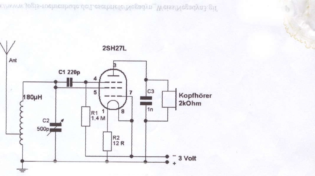 Hallo zusammen, ich habe mich an einer einfachen Negadyn Schaltung mit einer russischen 2SH27L versucht. Der Knüller hierbei ist, dass man mit minimalen Spannungen auskommt und erstaunliche Erfahrungen macht. Wenn man die Schaltung wie vorgesehen mit 3 V betreibt, ist die Lautstärke sehr leise, eigentlich kaum wahrnehmbar. Erhöht man die Heizung von 2,2 auf 3 Volt und mehr, wird das Ergebnis sehr gut; alle bei mir normalerweise empfangbare Stationen mit guter Lautstärke. Ich staune nur, dass die Röhre das mitmacht. Deshalb habe ich das auch nur kurzzeitig betrieben. Lässt man die Heizspannung auf normal und erhöht die Anodenspannung bewirkt das keinerlei Änderung der Situation. Es hängt demnach alles nur von der Emmission der direkt geheizten Kathode ab. Ich werde jetzt versuchen das Ausgangssignal mit einem einfachen IC Verstärker aufzupeppen und die Sache mit 9 V zu betreiben. Mal sehen was draus wird.