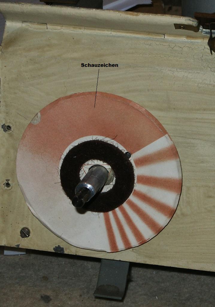 1. In diesem Gerät kann die Kopplung der Bandfilter (AM-Bereiche) und damit die Bandbreite der ZF verändert werden. Das geschieht durch einen Seilzug, der mit der Achse des „Tonblende-Reglers“ verbunden ist. Angezeigt wird die Stellung durch eine markierte Scheibe, die auf die Achse des Reglers aufgesteckt und durch ein Fenster in der Skalenscheibe sichtbar ist. Den Ist-Zustand der „Reglung“ habe ich in den beigefügten Bildern dokumentiert. Wobei ich mir ziemlich sicher bin, dass das nicht der Originalzustand ist: a. Die aufgesteckte Scheibe, die farblich bestimmt anders markiert war (eingeteilt in Sektoren?). b. Die Art, wie das Antriebsseil fixiert und geführt(aufgewickelt) wird c. Wie die Poti-Achse schwergängig gemacht wird, um die Kraft der Rückzugfeder zu kompensieren