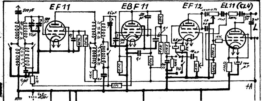Na, da hat der Autor der Herma Schaltungen glatt den 100 pF C oder einen ähnlicher Größe vorenthalten. Der NF Teil ist bei der Herma Schaltung etwas großzügiger konzipiert, wobei AÜ und LS im Schaltbild fehlen. Da sollte wahrscheinlich eine Anpassung an vorhandenes Material, der Notzeit geschuldet erfolgen.