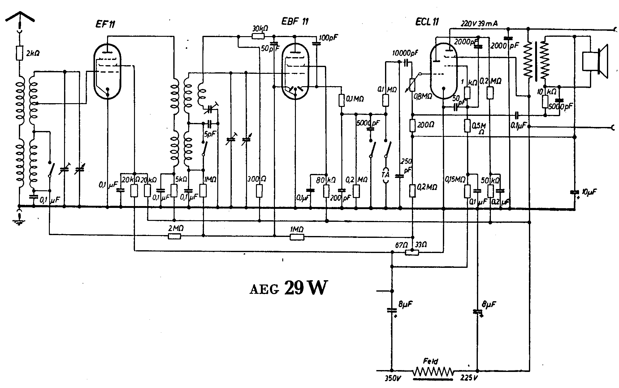 Hier das Beispiel einer Lösung der Industrie aus dem Jahr 1939. Ein Teil der halbautomatisch erzeugten Gittervorspannung wird hier für die Versorgung der HF- Stufen herangezogen.