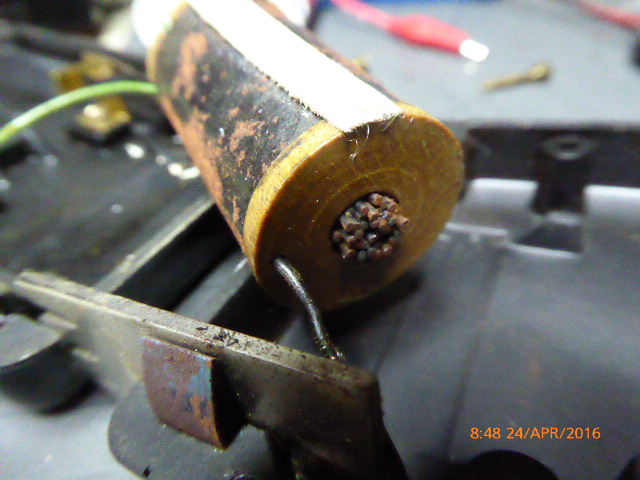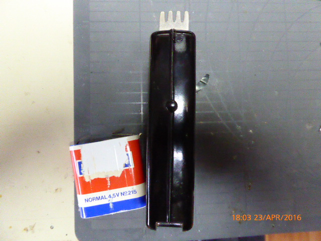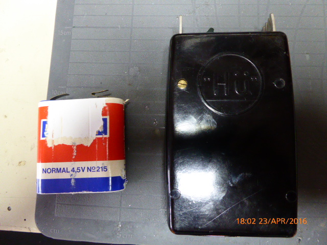 Vom Flohmarkt mitgenommen, da es ein schönes Gehäuse aus Bakelit hat. Zuhause aufgeschraubt und eine alte 4,5 Volt Batterie herausgeholt.