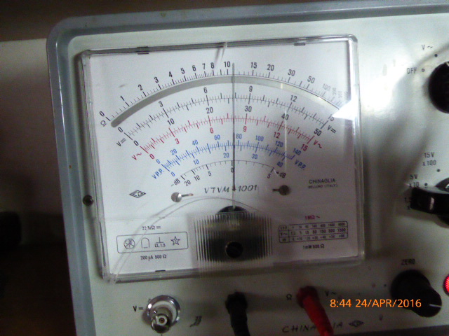 Nach dem zerlegen, stellt sich nicht viel Materiel heraus. Eine Spule und der Anschaltknopf. Mit dem Röhrenvoltmeter nochmals Gleichspannung gemesen, sehr wenig fast nichts. Bei Wechselspannung s. Bilder.... Wahlbereichsschalter ~= 1500 Volt