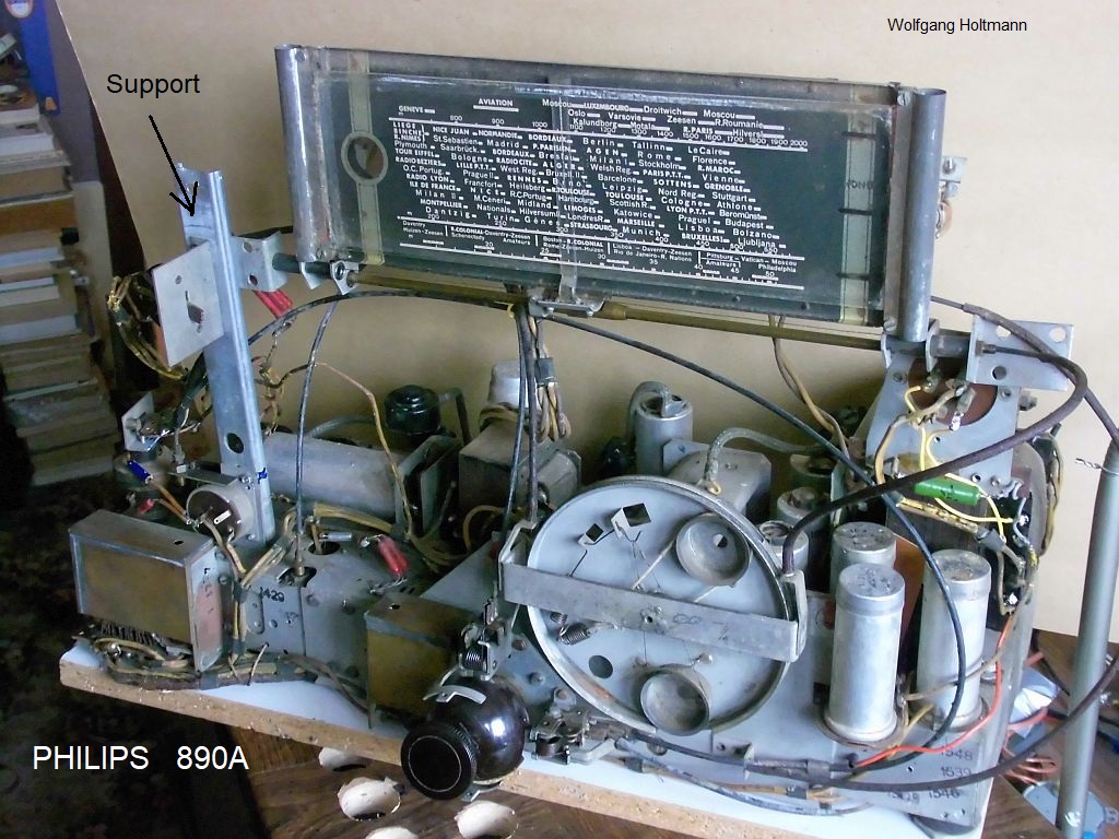Ich habe auch ein ein 890A. Leider mit sehr schlecht erhaltenem Gehäuse. Ua. deshalb habe ich mich noch nicht drangewagt. Philips hatte schon einige interessante Konstruktionen. Allein der Monoknopf ist ein recht kompliziertes Gebilde. Mein Gerät hat die Werk Nr. E11665E017 und die gleiche Röhrenbestückung wie Wolfgangs 890A.