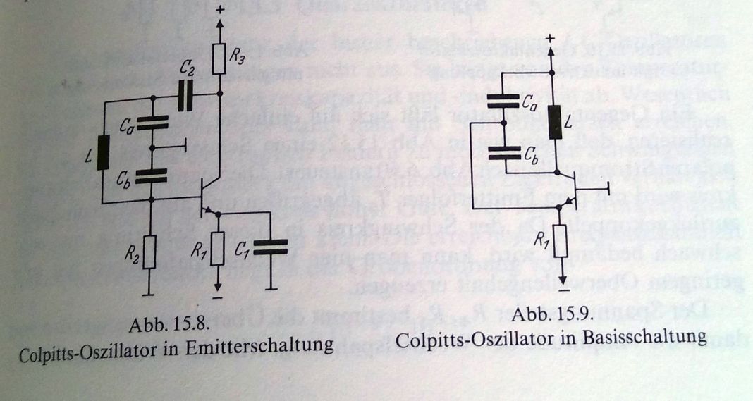 "Der PNP- Transistor T1 arbeitet als Emitterfolger . C2 und die Basis-Emitter-Kapazität von ca. 5pF bilden einen kapazitiven Spannungsteiler. Zusammen mit dem Schwingkreis wird ein Colpitts-Oszillator gebildet."