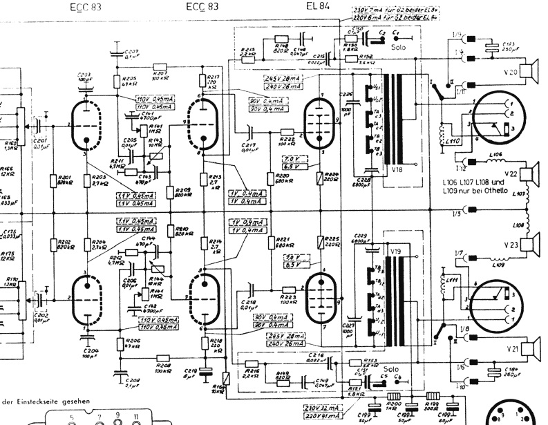 Hallo Rainer, sorry wegen des direkten Widerspruchs, das ist in diesem Fall sicher nicht richtig. Ich habe bisher an einen Druckfehler im Serviceschaltbild gedacht, stimmt aber nicht. Hier die ganze Story: Von früher (etwa 1983) hatte ich ein Chassis aus einem Telefunken Imperator, das ist die gleiche Schaltung (320) wie im Othello 1959/60, von der es drei Varianten gibt: 0/632, 1/632 und 2/632, in letzterer ist kein Kathodenwiderstand eingezeichnet. Auf meinem Dachboden habe ich das Chassis wegen mehrfachen Umräumens nicht gefunden, aber als ich im Ruhrgebiet für 2 Bauvorhaben war, ausnahmsweise mit meinem Oldtimer, hat jemand für wenig Geld ein Telefunken Imperator angeboten und aus dem rückwärtigen Foto konnte ich sofort das 2/632 identifizieren, also schnell gekauft und die Truhe aller Technik entledigt als Holz abgegeben.... Heute bin ich wieder in Jüterbog und habe den Schaltplan hervorgeholt und natürlich das Chassis genau untersucht, es gibt tatsächlich keine Kathodenwiderstände, trotzdem fundamentale Bässe!