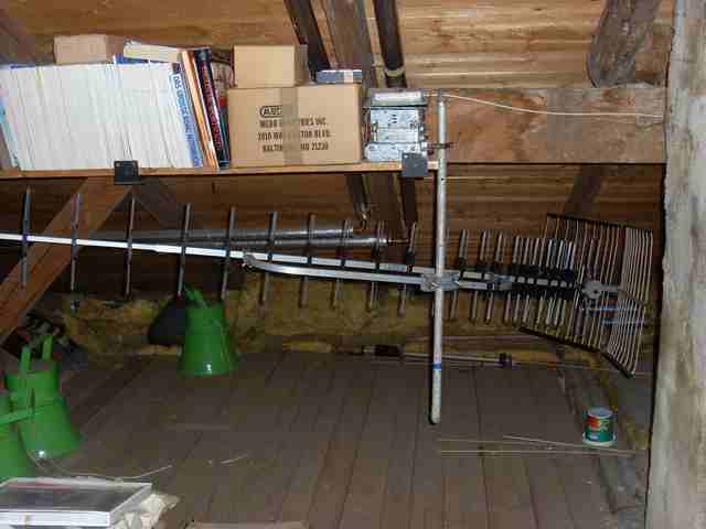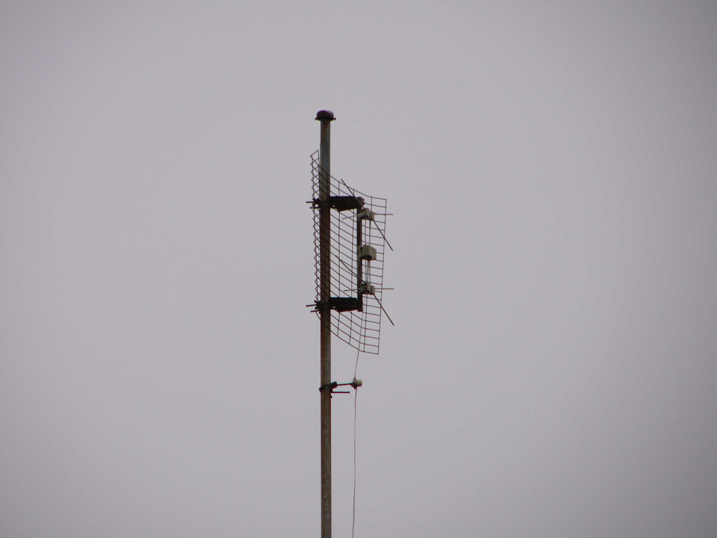 Oben VHF Richtung HD, da wurde gerichtet nach Osten vertikal ARD ausgestrahlt. Ebenfalls auf UHF. Warum man dann noch ne Antenne montiert hat? Unten ggf. Fuba?, Richtung HD.