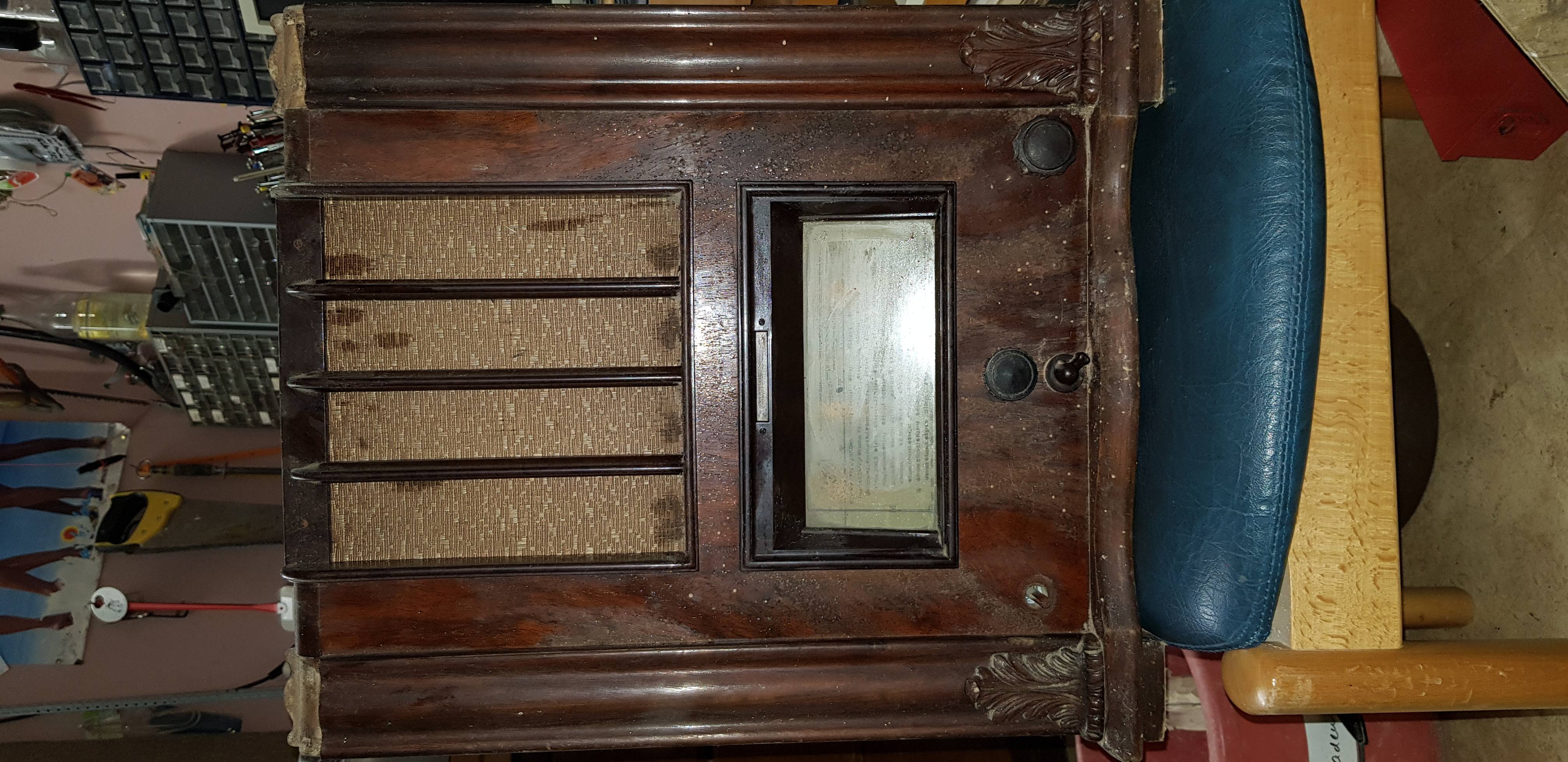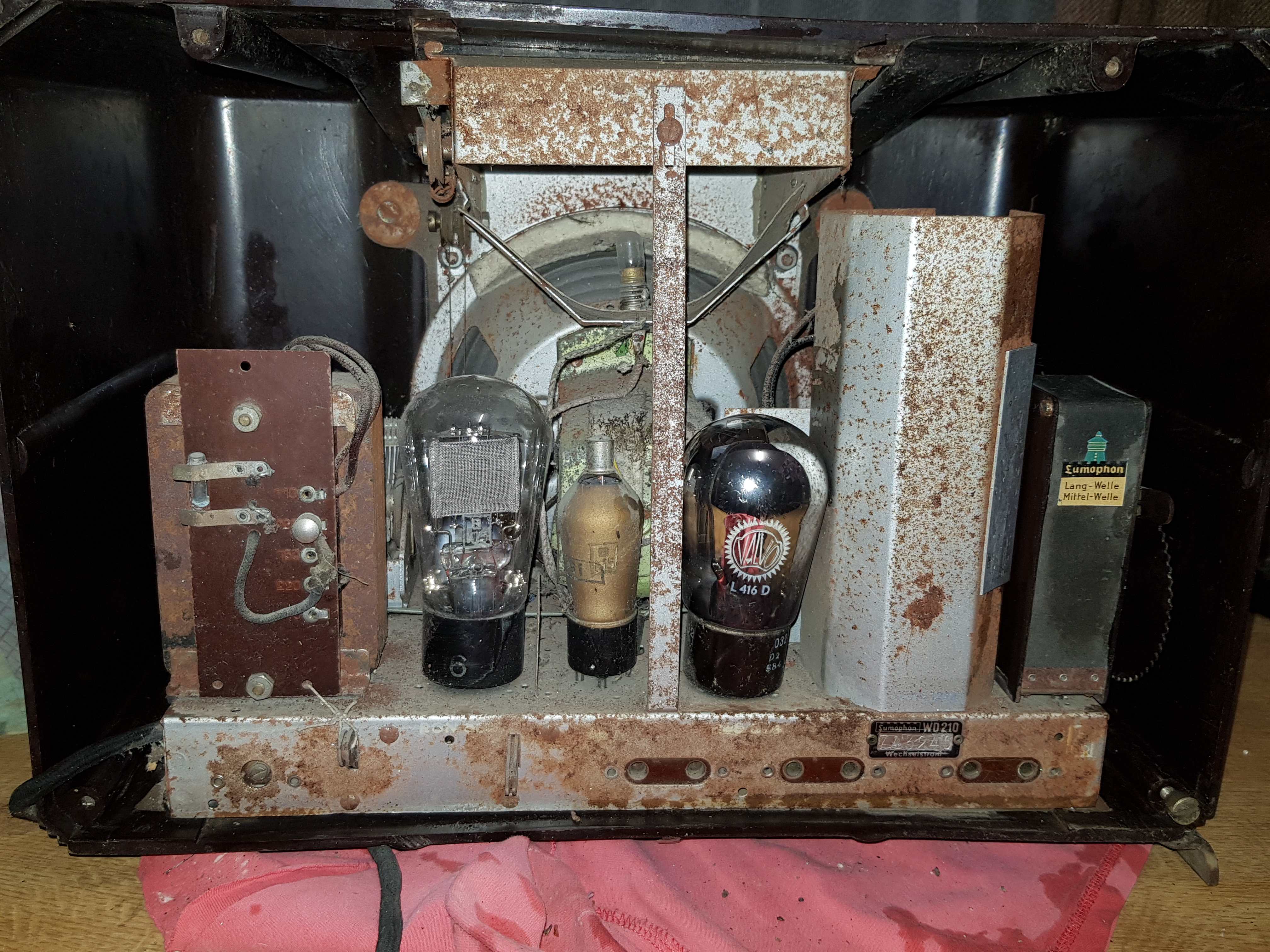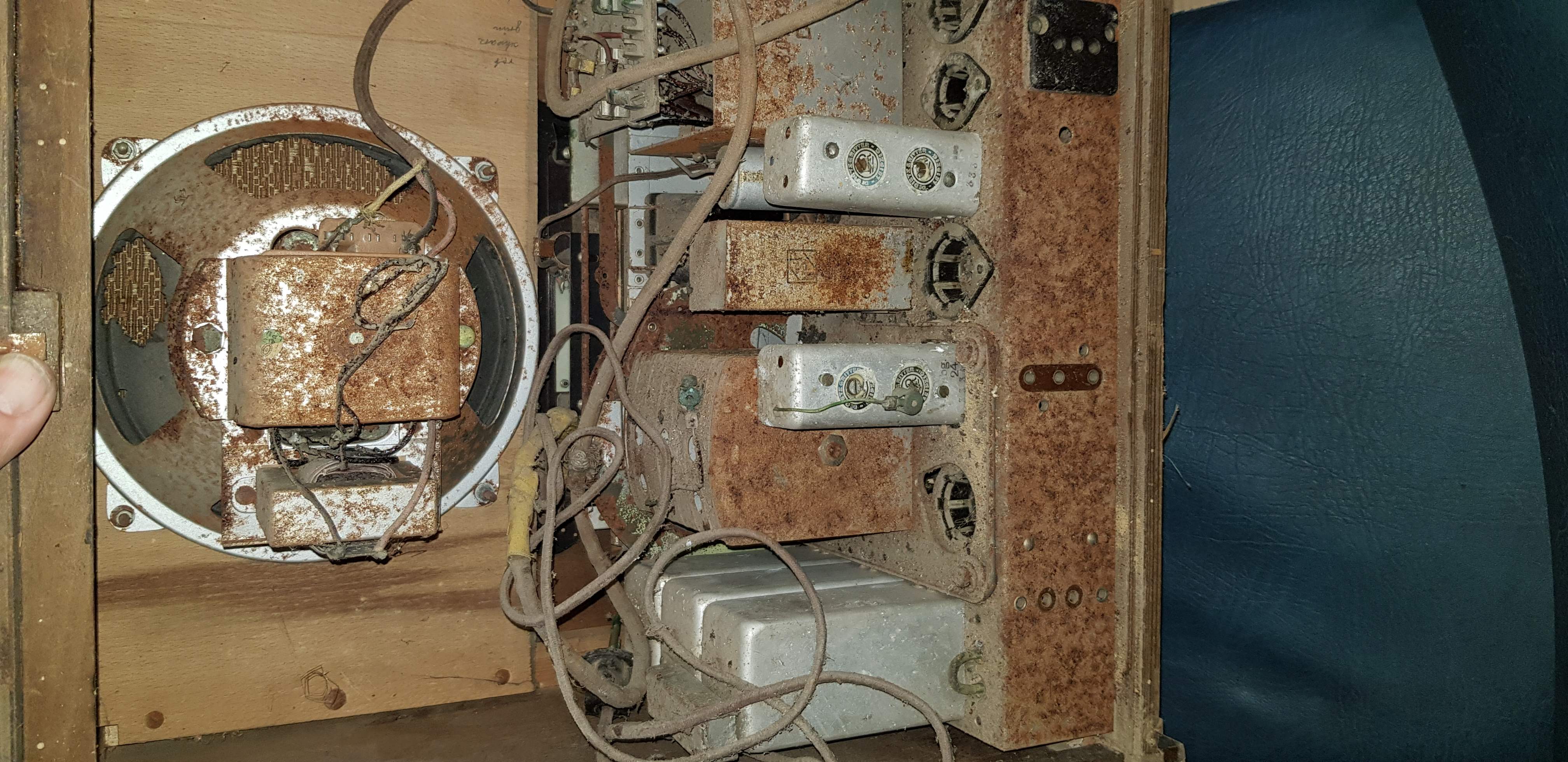 Obi:Hallo! Nochmals recherchiert- der Radio ist ein Körting (Logo war hinter dem Bohrmehl der Holzwürmer). Wahscheinlich ein S3320 WL. Und Radiofunk war eine Firma in Ludwigsburg ; Wolf G. Medow.