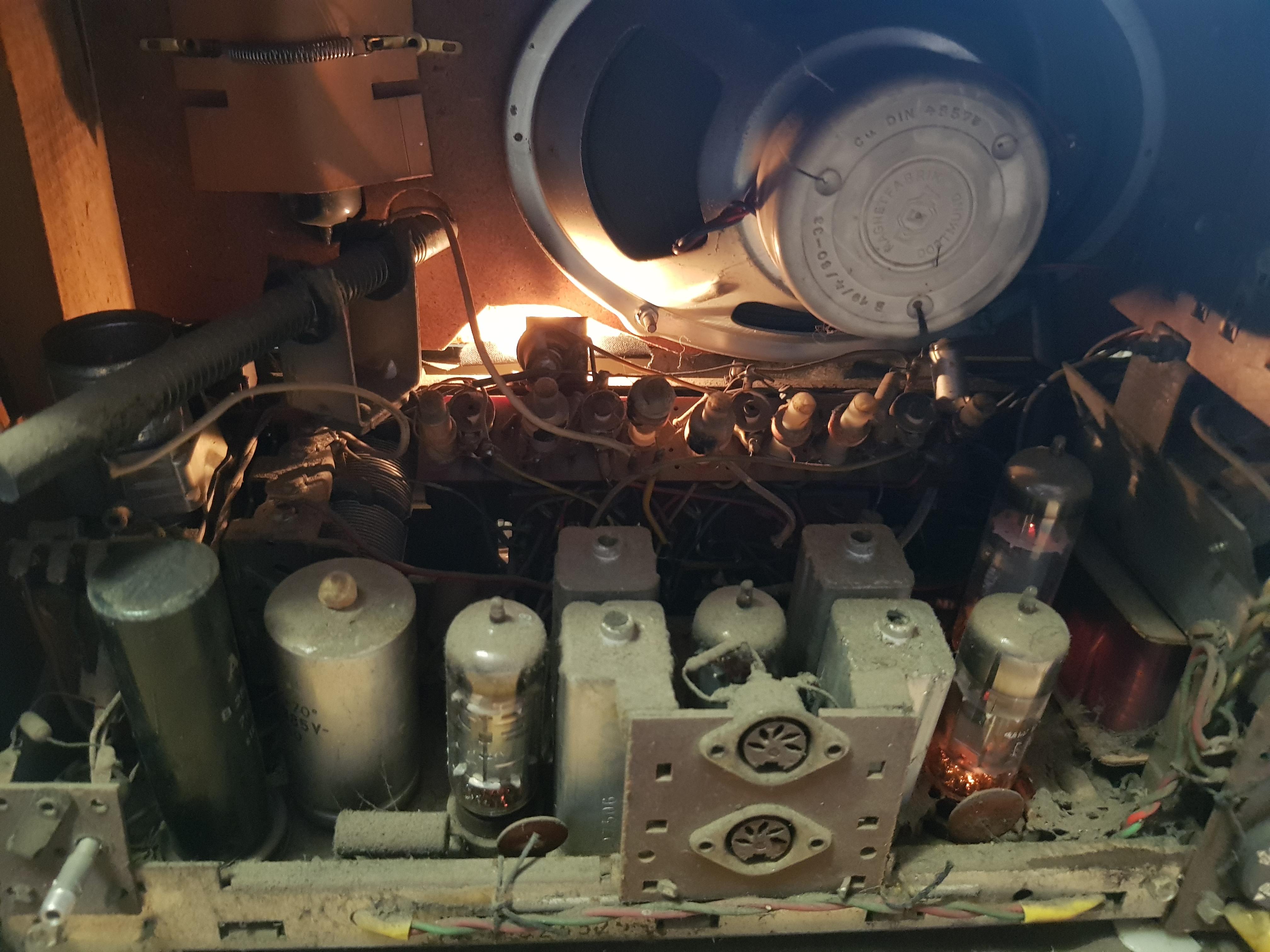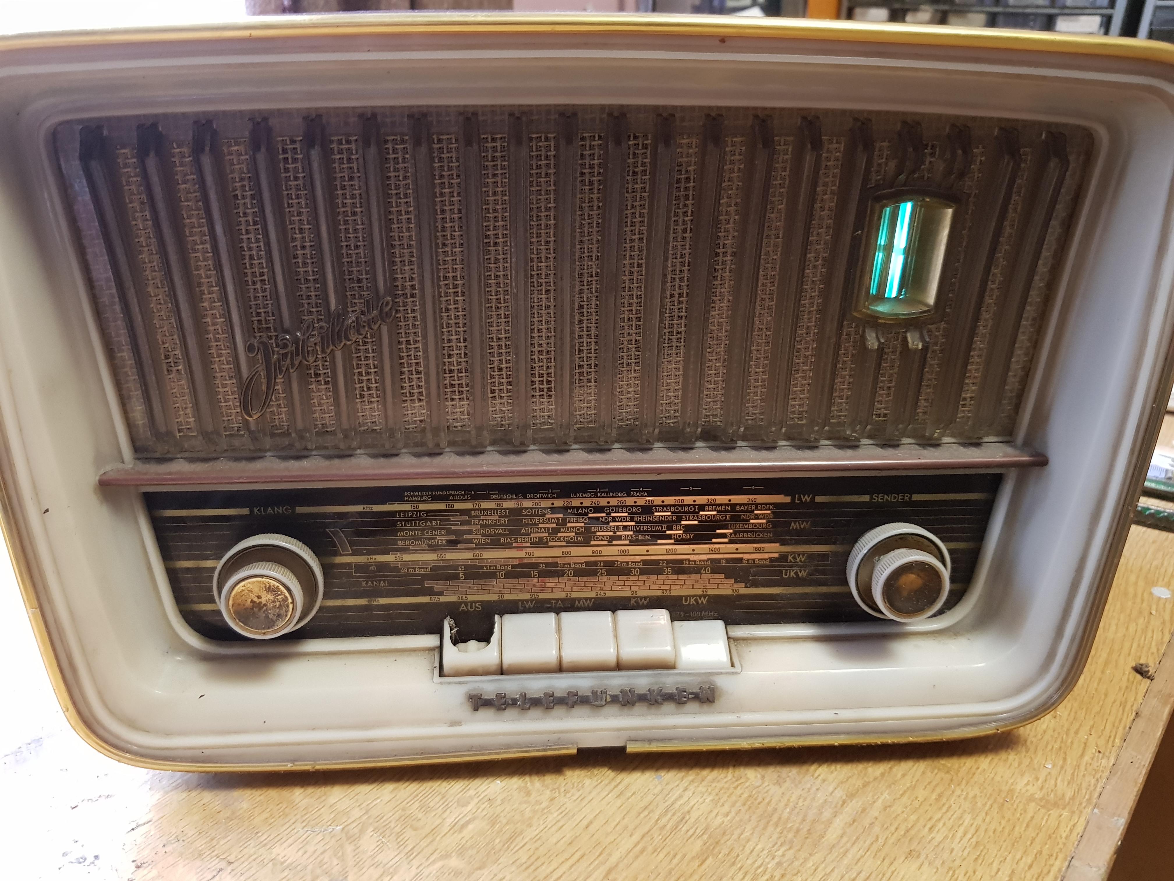 Hallo! Habe mich vorhin getraut einen Telefunken Jubilate zu reinigen und ihn einfach mal ans Stromnetz zu hängen. Auf UKWkonnte ich immerhin Bayern1 und B4 Klassik empfangen - wenn auch ganz leise. Und der Schaltplan war auch noch im Gehäuse. Habe mich gefreut. Schönen Sonntag noch. Grüße Jürgen