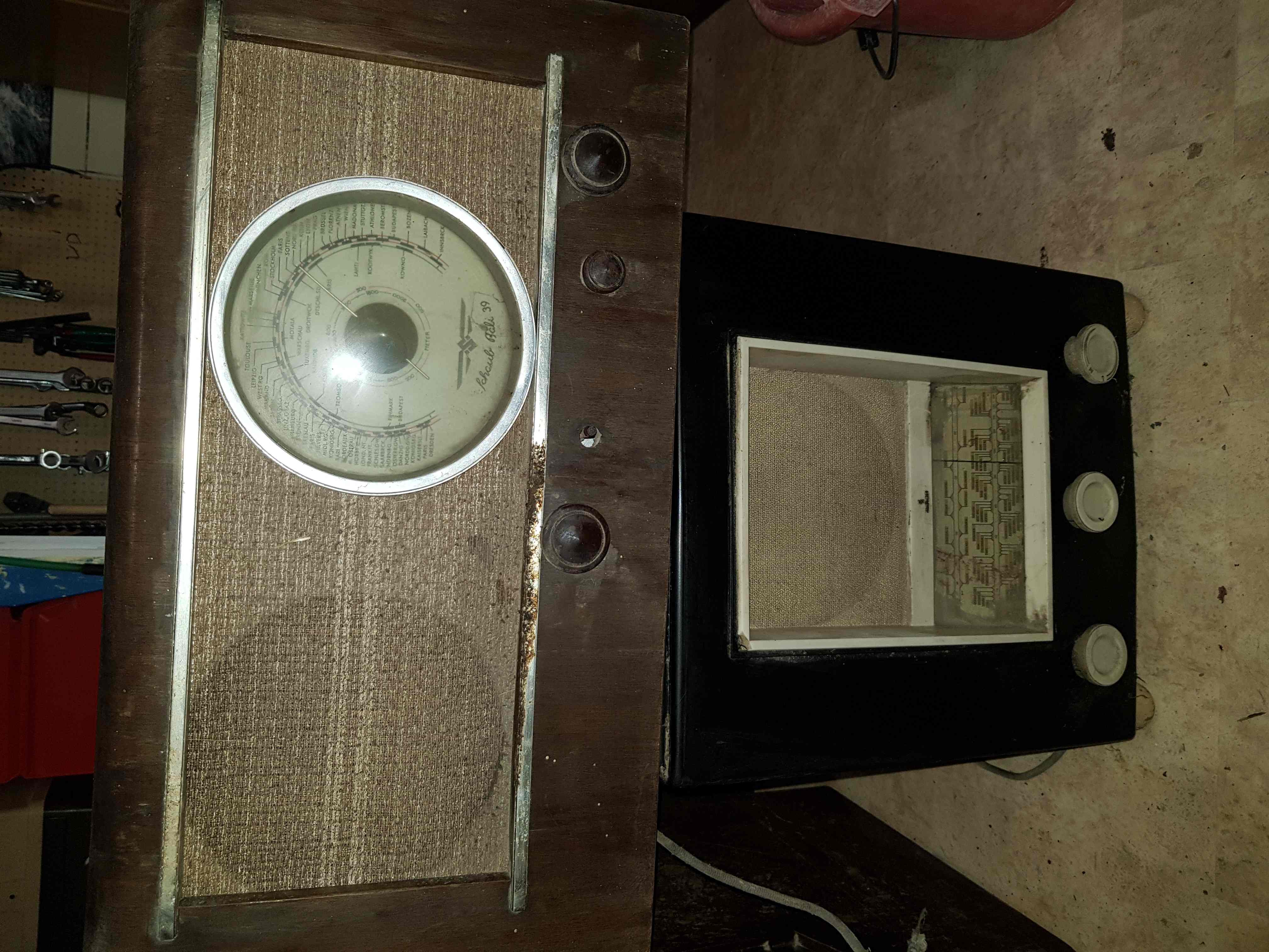 Kurz vor Silvester hat mich ein Verwander informiert, das mein Schwiegervater vor rund 60 Jahren bei ihm in der Scheune ganz oben und ganz hinten Radiogeräte deponiert hat. Er schmeißt sie jetzt raus. Also habe ich sie gesichtet. 60 - 70 Geräte in allen Zustandsarten. Funktinstüchtig ist keines mehr. Habe ca. 25 Geräte gesichert - meistens Volksempfänger. Aber auch ein paar optisch schöne. Urteilt selber. Evtl. könnt ihr mir auch was zu den Geräten sagen - der auf dem Stapel der Volksempfänger oben rechts z.B. Bei den anderen Geräten habe ich nur den Lumophon "markgraf" und den Schaub "bali" gefunden. Auf dem Dachboden liegt auch noch ein Tefag. Den sichern?