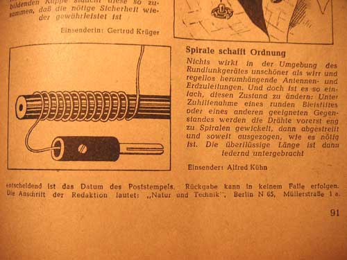 Hallo zusammen, nach 45 bis Mitte der 50er Jahre gab es eine Berliner Halbmonatsschrift "Natur und Technik" von deren Ausgaben ich einen Stapel besitze. Neben den aus heutiger Sicht sehr spannenden Artikeln zu den neuesten Entwicklungen und Entdeckungen und gab es die Leserrubrik "Handgriffe mit Vorteilen!"