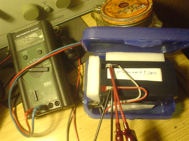 Ende 2010 hate ich mir für die Blinkeranlage meines 2T betriebenen Möfchen einen Blei-Gelakku gekauft bei Hamwanich und diesen dann am 4.9.2011 am Labornetzgerät nachgeladen mit 13,6V bei1,28Ah gemäß Vorschrift.Irgendwie hatte ich aber übersehen daß ich mich verpolt hatte und wuderte mich daß der Akku warm wurde,da der Ladestrom aber runter ging und die Spannung anstieg hatte ich nichts weiter gemacht zumal ich meinen Fehler auch nicht bemerkt habe weil der Laptop vor dem Netzteil stand und dieses verdeckte.
