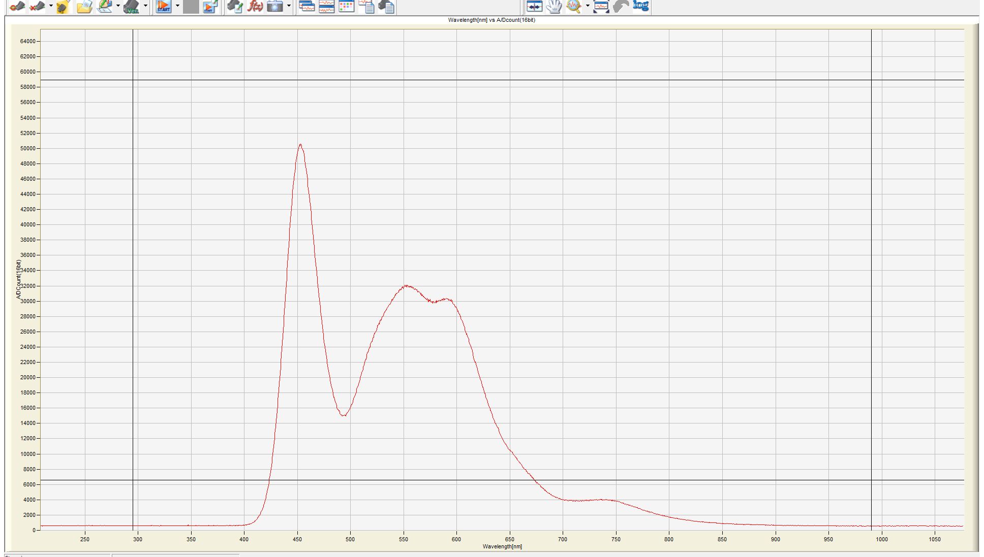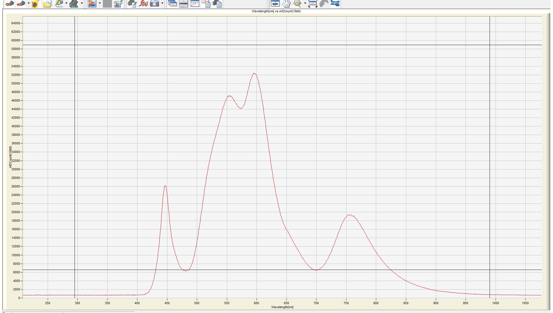 ich habe jetzt einmal drei Taschenlampen verglichen. Zu meinem Erstaunen wird bei einer der Lampen kein Takt verwendet. Für die Messungen habe ich ein Spektrometer, sowie einen Photomultiplier (auch SEV genannt) verwendet. Bei der 3Watt LED kann man noch einen deutlichen Anstieg im nahen IR-Bereich erkennen. Das ist eigentlich verschwendete Energie, da das menschliche Auge in diesem Bereich ja nichts mehr sehen kann. Damit keine Missverständnisse entstehen, die Amplituden der Messungen sind keine direkte Referenz zur Intensität der LEDs, da ich die -HV des PMTs und auch die Integrationszeit des Spektrometers so angepasst habe, dass der Dynamikbereich 'gut' genutzt wird.