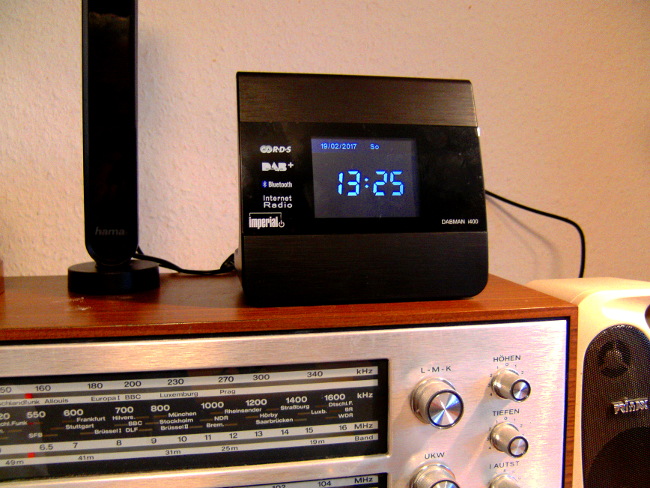 So langsam geht es weiter. LS Poti nochmal neu beschaltet, das originale ein 1,3 M hatte einen Anzapf bei 300 K. Mit einem Stereo - Poti 2 x 1 M hab ich versucht die Loudness Schaltung nach zu "interpretieren" Das UKW Skalenseil wurde erneuert, das alte war ziemlich floddrig. Technisch bin ich fast fertig. Nur der Line Übertrager muss noch eingebaut werden; einen passender "Zuspieler" ist auch schon da. Dieser Dabmann 400 hat keine "Endstufe", das Gerät ist zum Anschluss an vorhandene Audio Lautsprecher Verstärker gedacht. Es hat sogar noch Cinch Buchsen. Bis auf UKW ist das Radio gut. Noch ein paar Fotos von den Teilen.
