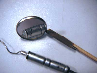 das mit dem Zahnarztspiegel ist eine prima Idee! Heute mußte meine Frau hin und ich natürlich mit. Gleich die Arzthelferin gefragt. Nein, gebrauchte schmeißen wir gleich weg, die sind eh hin. Aber wir haben für 90Cent neue aus Kunststoff. Nicht lange überlegt und gekauft, hier ist er: