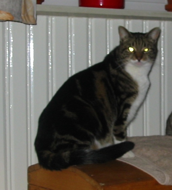 Heute Abend war mein Mikesch kurz allein in der Werkstatt. Nun hat er auch magische Augen. Vermutlich hat er zu intensiv an der neuen Verstärkerschaltung geschnuppert.