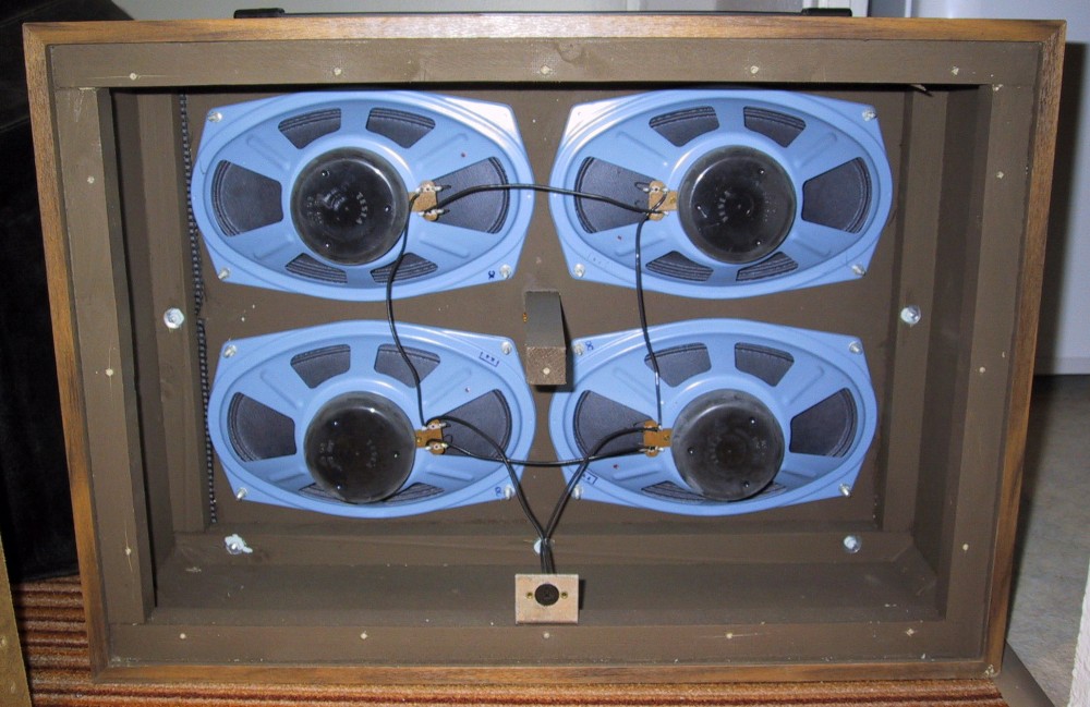 Danke für deine Anfrage. Ich habe die Box inzwischen ausprobiert und alle 4 eingebauten Lautsprecher funktionieren.Ich denke mal das so eine Box für Scmalfilmprojektoren gebaut wurden. Ich habe einen 16mm Schmallfilmprojektor "Meopta Meoclub Automatic 16H",und da paßt so eine Box super.