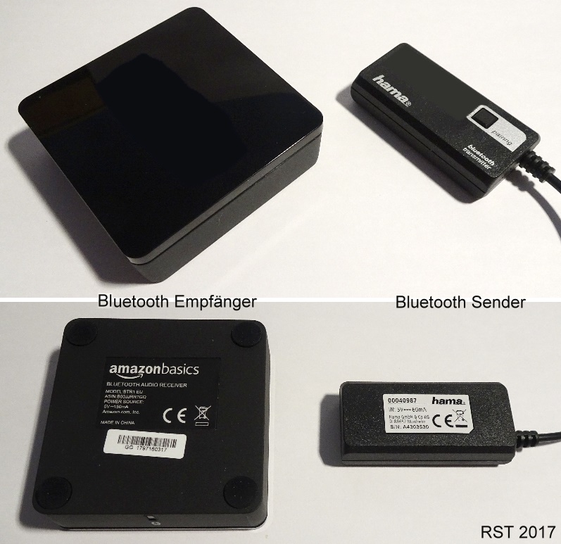Es gibt auf dem Markt viele Bluetooth-Sender und Bluetooth-Empfänger, die mit Batterie oder Netzteil oder USB-Anschluß zur Stromversorgung arbeiten.