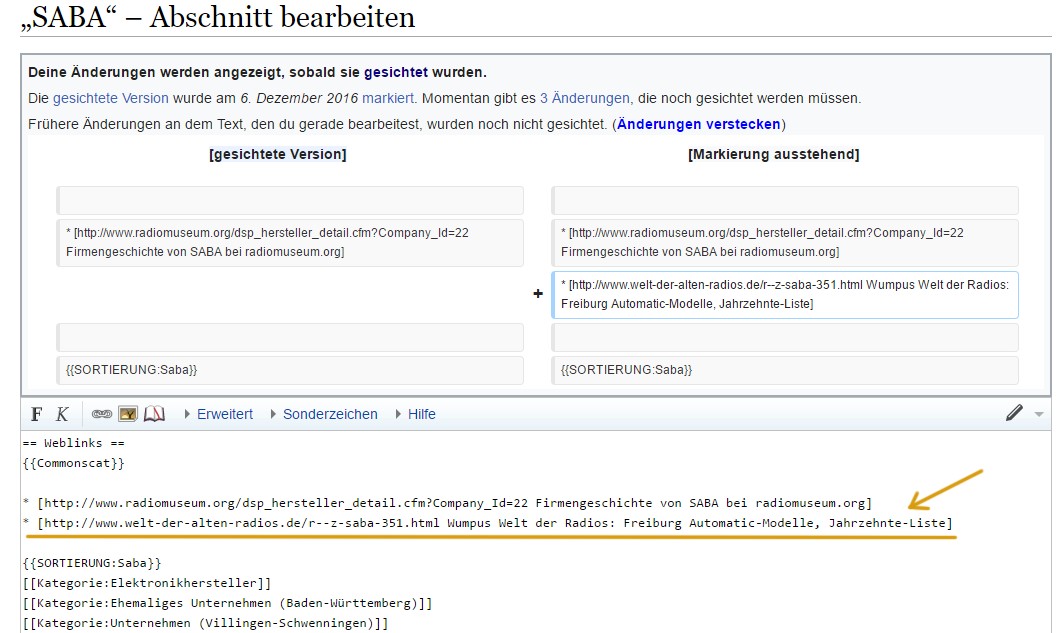 Der erste Eintrag vom Radiomuseum.Org ist schon lange öffentlich. Könnte es sein, dass es "Sichter" gibt, die eher Symphatie für andere WEB-Seiten haben und Wirkung durch Nichts-Tun generieren? Paranoia des Wumpus?