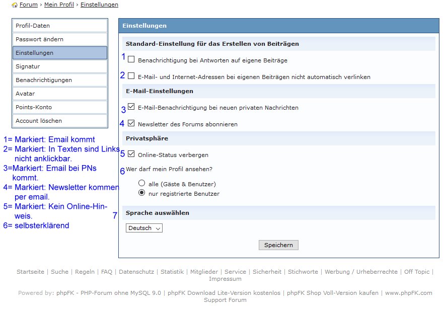 Hier schon mal die Erklärung des Menues "Mein Profil - Einstellungen":