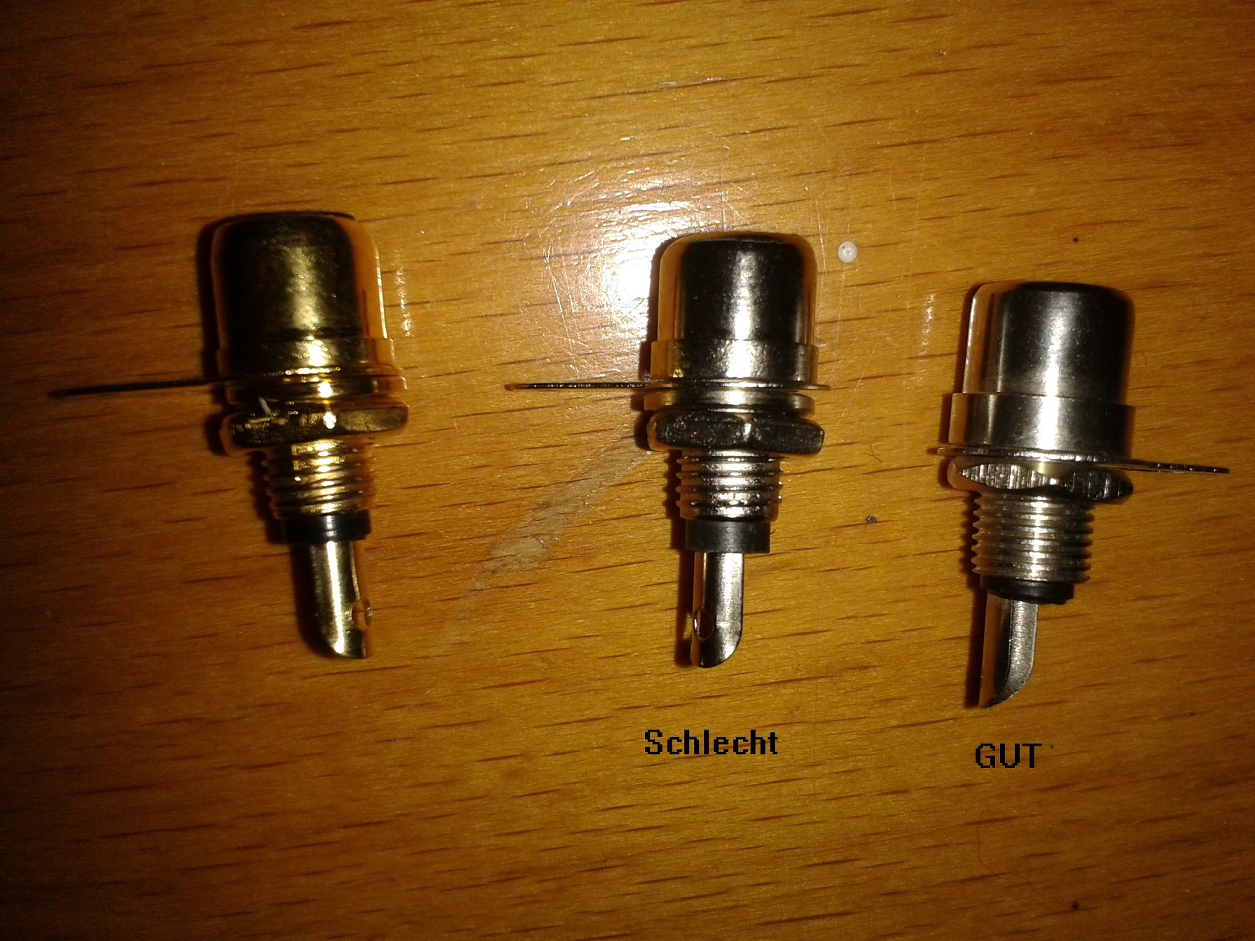 Die silberne Buchse ist der Problem Typ, die Goldene Buchse habe ich noch nicht probiert, Gewinde scheint aber auch nicht so toll zu sein.