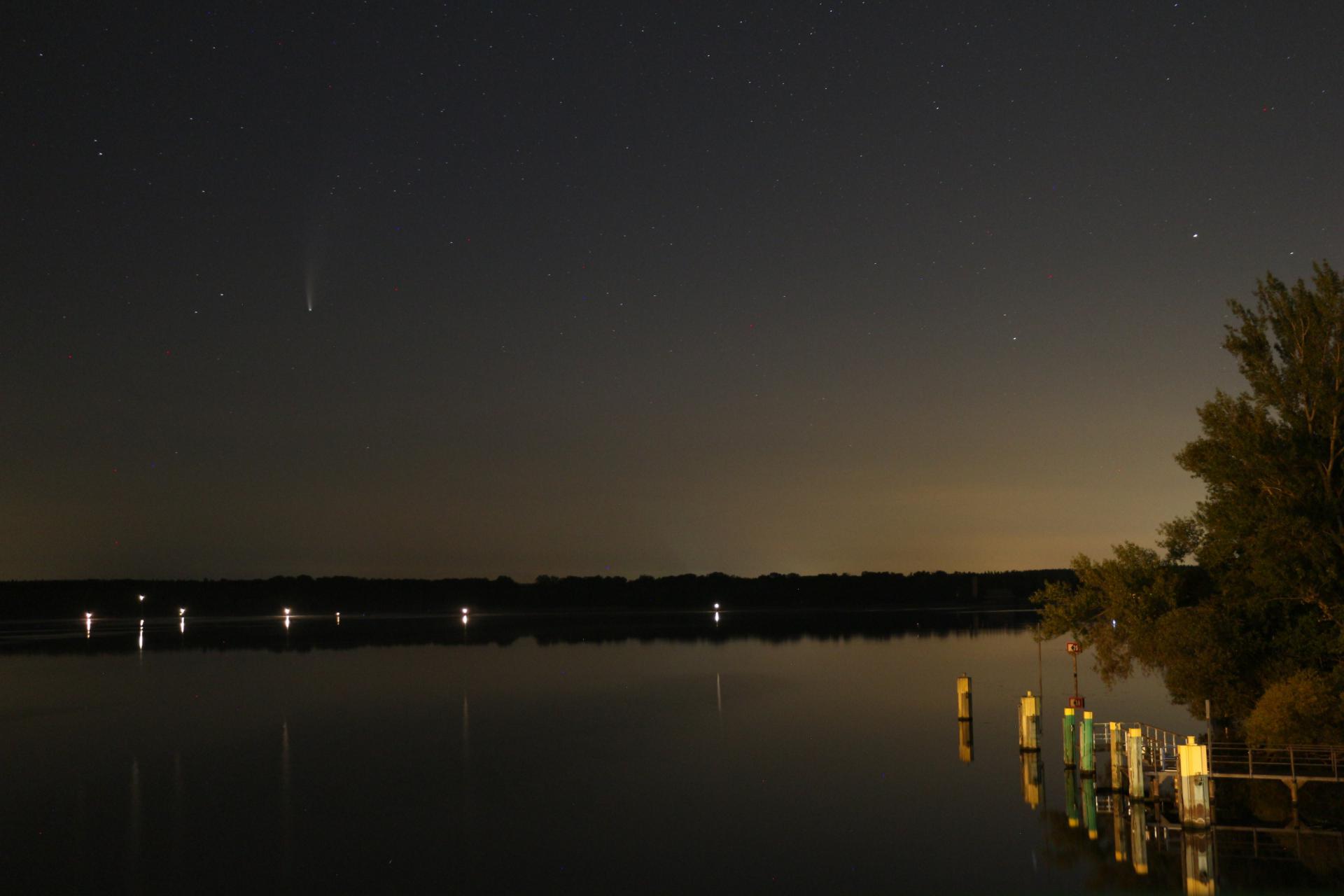 ich war heute Nacht zwischen 0:30 und 1:30 in Potsdam unterwegs. Von der (berühmten) Glienicker Brücke konnte ich den Kometen Neowise gut aufnehmen. Die Kamera ist eine Canon SLR EOS 650D. Belichtungszeiten zwischen 15 und 20 Sekunden und Blenden zwischen 3,5 und 5 mit einem Teleobjektiv 18 ... 135 mm.