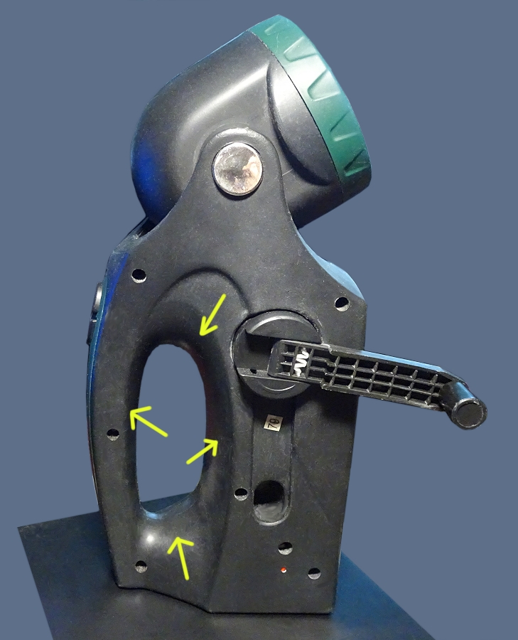 Bei der Leuchte erkennt man kein Materialunterschied für den Anfassbereich, trotzdem ist dieser Bereich hauptsächlich betroffen.
