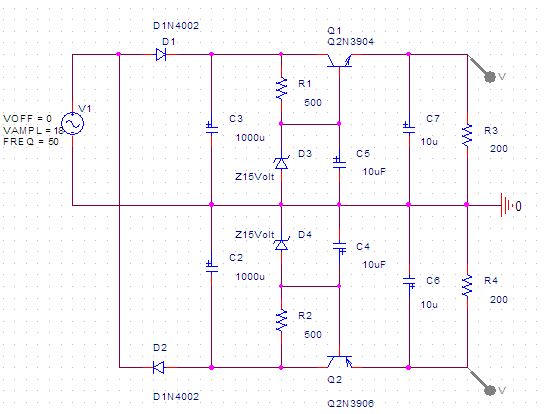 Fazit: Es handelt sich wahrscheinlich um eine symmetrische Spannungsversorgung für Operationsverstärker, die eine stabilisierte Gleichspannung aus einer Wechselspannungseingabe liefert."