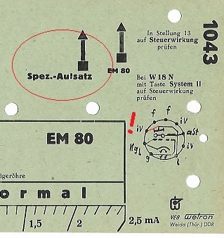 Zu der EM80 mit Karte 1043 ist anzumerken, dass man in deiner Kiste eine zweite Novalfassung (Aufsatz) angebracht hat! Hier müsste Feder 3 NICHT an Katode liegen, was bei der anderen Fassung (N) wohl der Fall ist. Das ist in der Beschreibung der Erweiterung nicht angegeben...