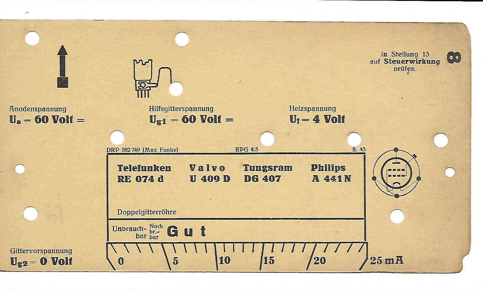 Eine letzte Bitte an Dich, ein Foto der Karte 122 = RE074d. Doppelgitterröhren sind meine Spezialität....