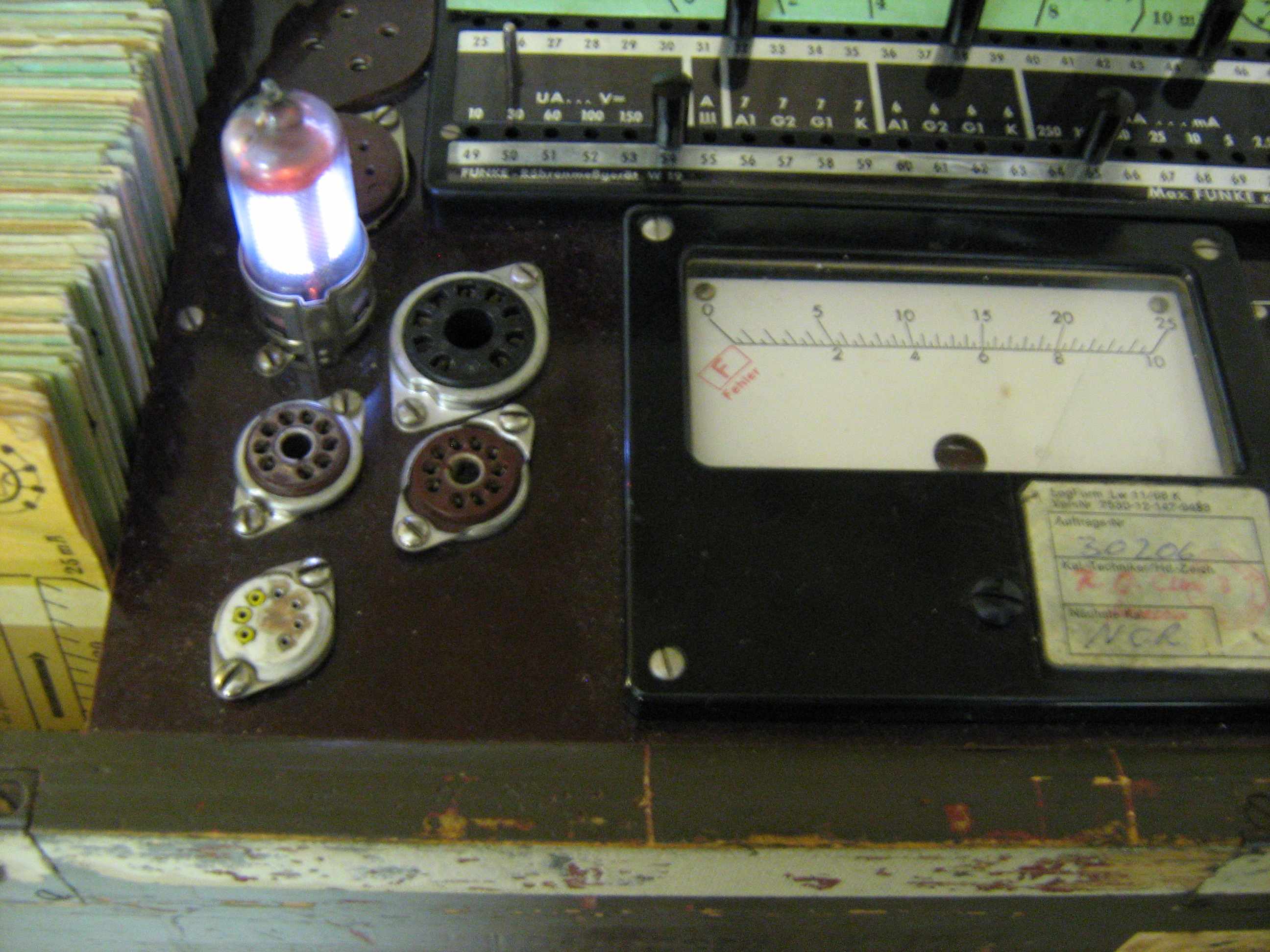 Obwohl ich mich seit Jahrzehnten mit Röhren beschäftige, habe ich nie das Bedürfnis verspürt, so ein professionelles Röhrenprüfgerät von Neuberger oder Funke o.ä. zu besitzen. Dazu ist es bei mir einfach zu selten vorgekommen, daß ich Röhren nicht in ihrem angestammten Gerät prüfen mußte. Ich bewundere aber die Röhrenfans, die so ein Gerät besitzen, anwenden oder sogar selber bauen.