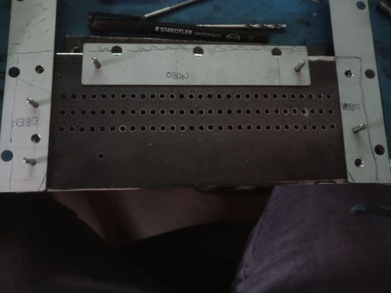 Fertig gerieben und Stahlplatte ist getrennt und 1.5mm Blech wurde eingelegt und sorgfältig angerissen und gebohrt (oh es passt prima)