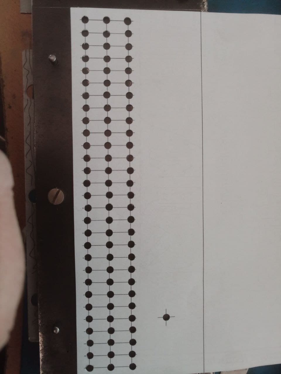 Bohrschablone eingelegt und gestanzt... es trifft recht gut bis auf paar leichte Ausreisser (das ist alles Handarbeit mit Tischbohrmaschine (level Aldi ))
