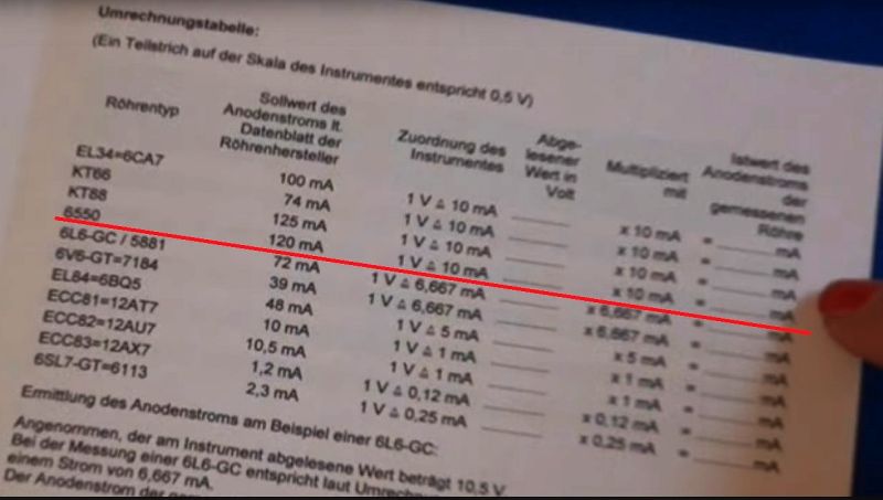 Ich habe mir mal das Video angeschaut, da wird eine Tabelle gezeigt, welche Anodenströme als normal bewertet werden. Für die EL34 und EL84 stimmt das mit den Angaben vom Hersteller überein. Über die dann angelegten Spannungen wird nichts ausgesagt.