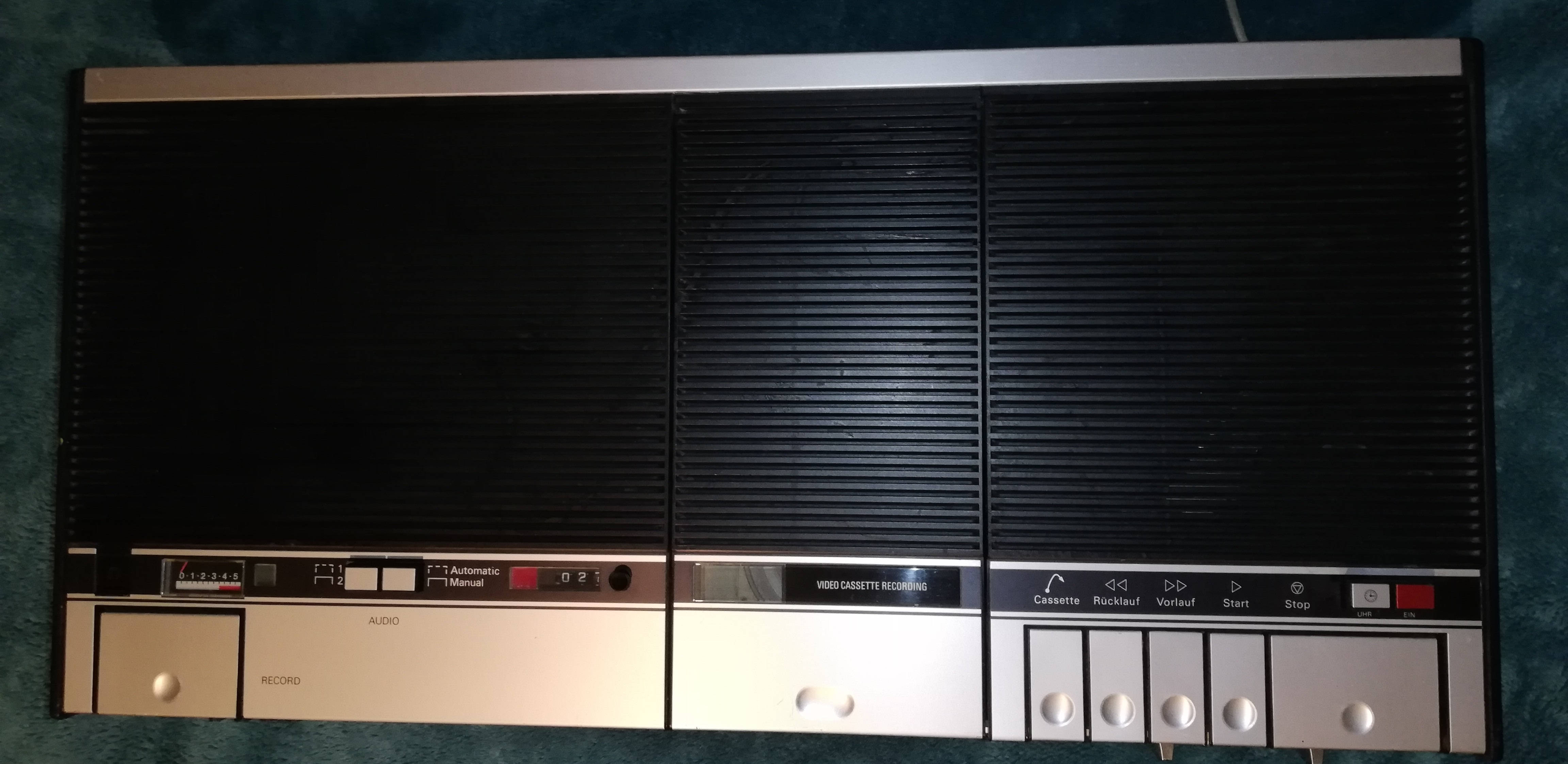 Hier habe ich jetzt Fotos von einem Grundig VCR621 gemacht. Das war neben dem VCR601 der einzige mobile VCR-Recorder, der auch mit einen Akku oder Netzteil betrieben werden konnte, dazu noch mit Echtzeitzählwerk über die CTL-Spur und 2 unabhängige Tonspuren.