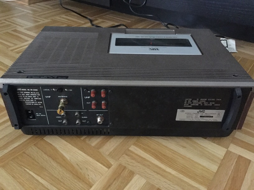 hurra, mein JVC HR-3300 (übrigens in der US-Version) ist da! In dem Gerät steckte noch eine Videokassette vom Vorbesitzer, die man nicht mehr entnehmen konnte. Ich habe das Gerät an einen Spannungskonverter angeschlossen (110V) und - ich mache es kurz - damit auch die Kassette nicht befreien können. Die Mechanik bewegte sich einfach nicht.