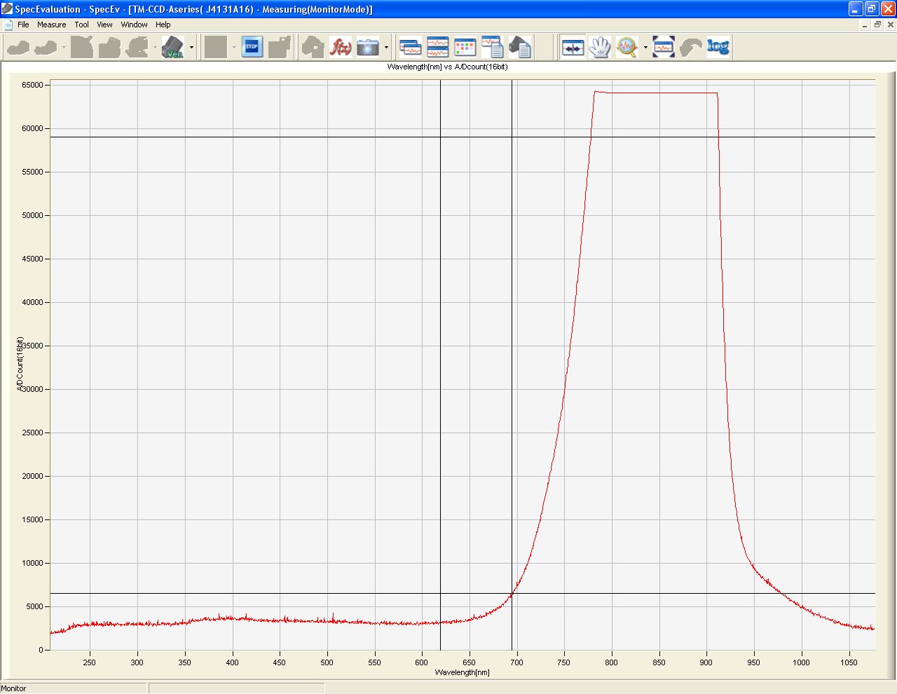 es sind doch IR-Dioden. Sie haben allerdings eine sehr grosse spektrale Halbwertsbreite. Bei totaler Übersteuerung des Spektrometers kann man am unteren Ende bei ca. 620nm deutlich den Anstieg erkennen. Unsere Augen sind wirklich sehr empfindlich.