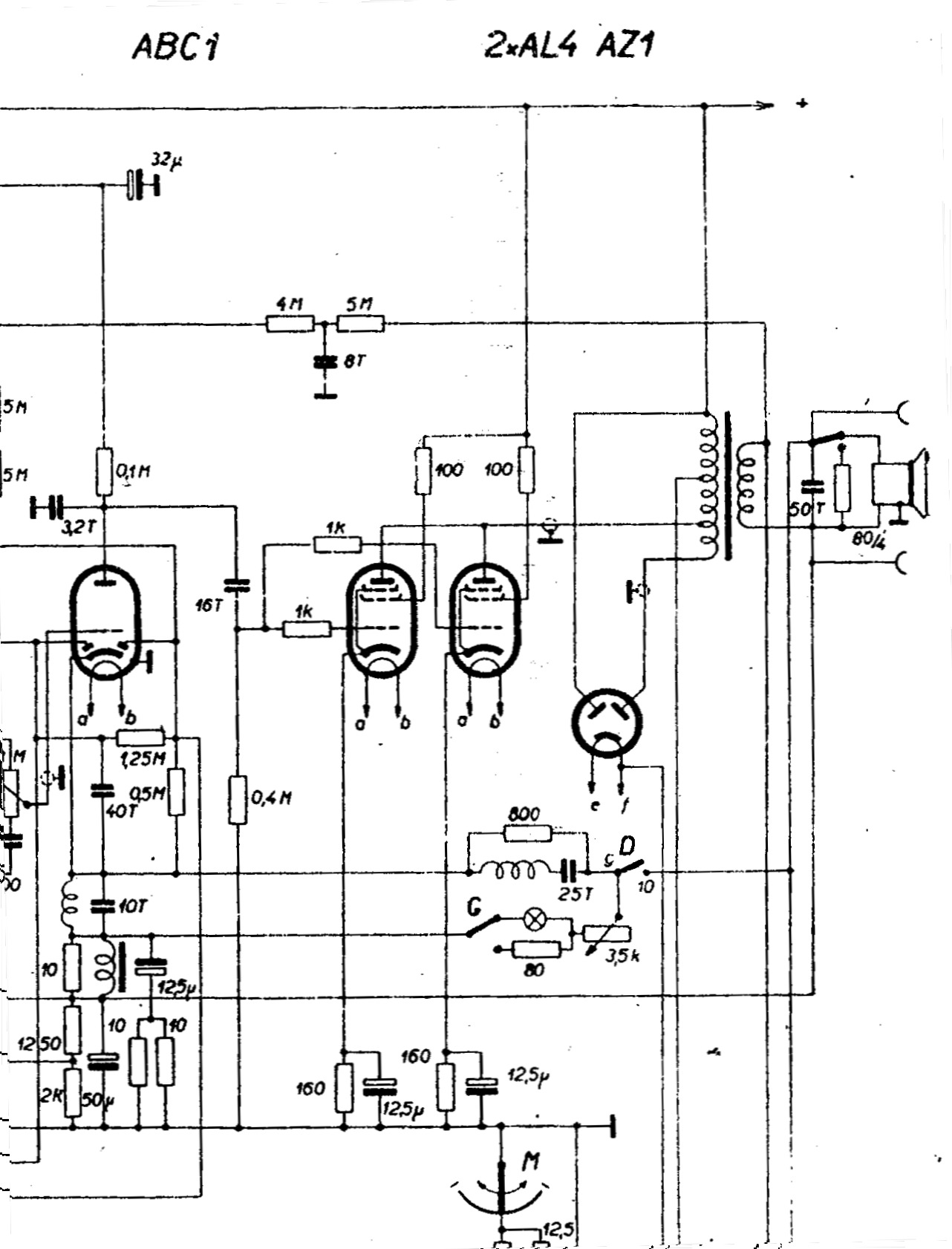 Statt der 2x AL4 im Schaltbild hat mein 890A als Endröhren 2x EL3 wie in dem niederländischen Philips-Auszug.