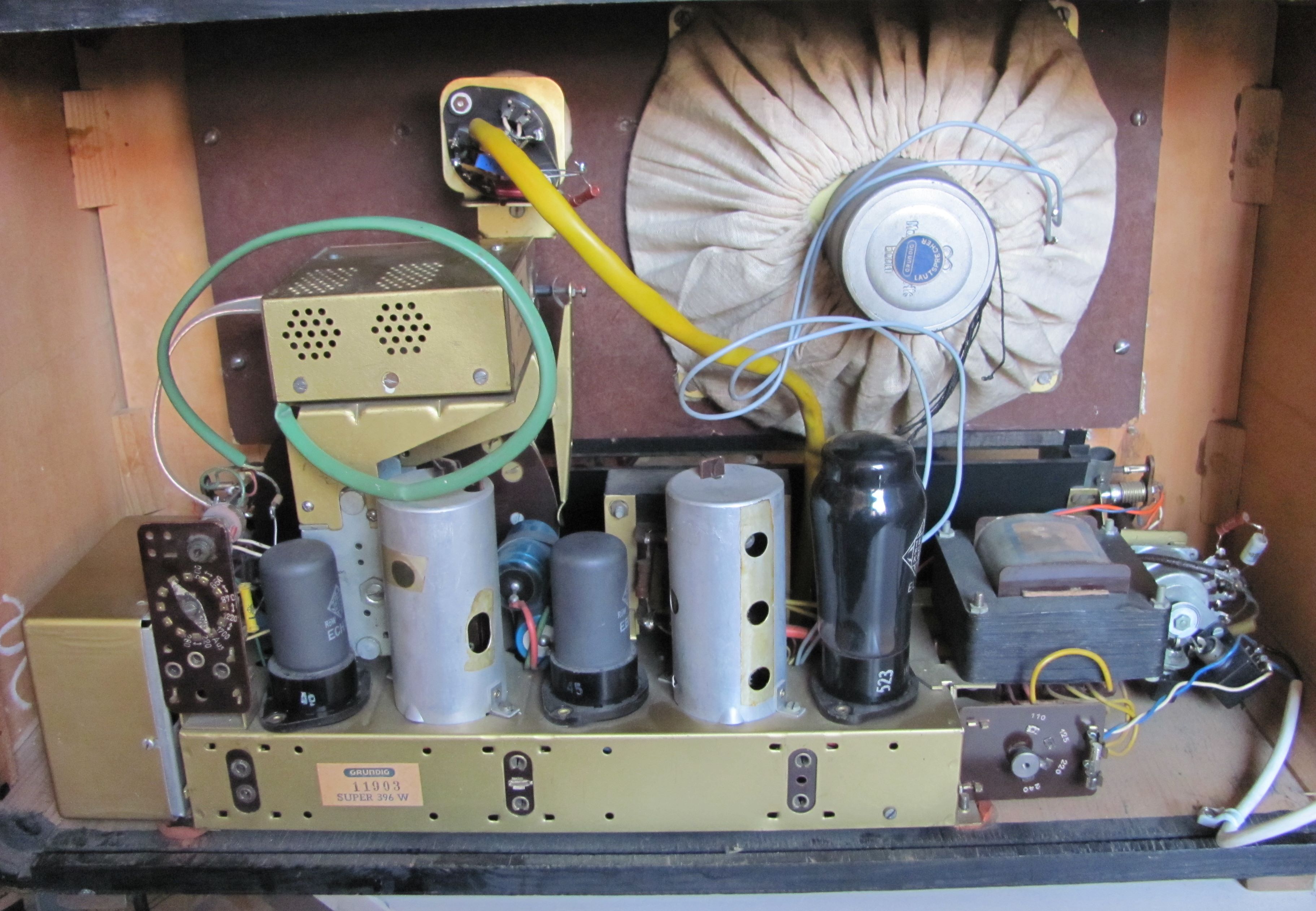Saba Freiburg W10US (für U kw S erienmäßig) mit serienmäßig verbautem Saba UKW-S Superhet. Bestückung: ECH42 EF42 EF42 und EQ80