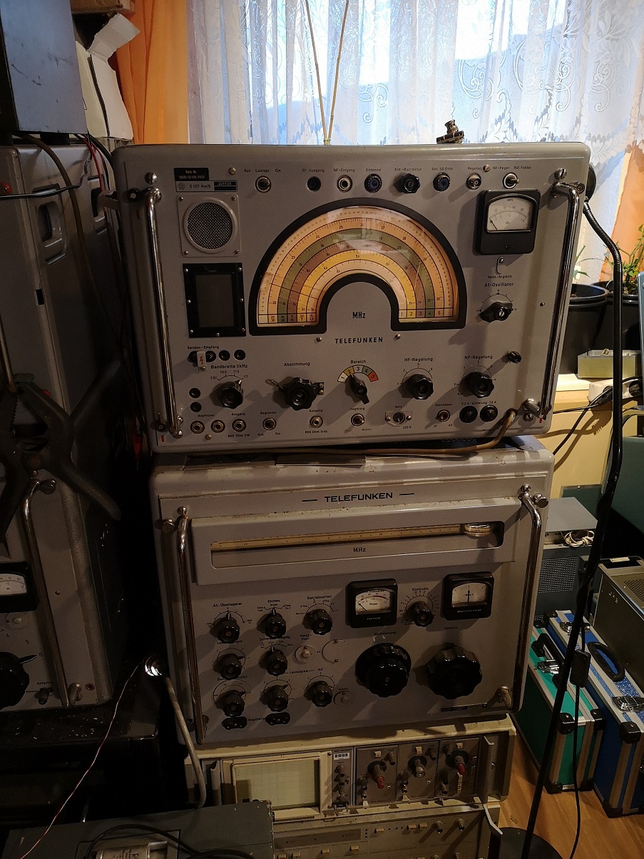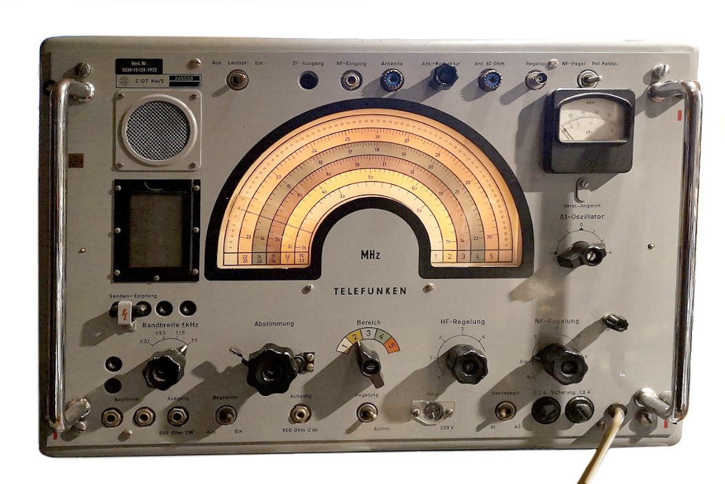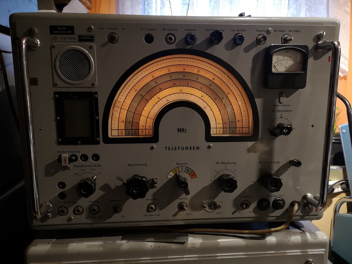 Der kleine Halter ist für Zettel mit Frequenzen die überwacht werden . E127 ist übrigends der schönste unter den großen Telefunken und hat auch heute noch einen Wert. Es gibt ihn auch in Nato-Oliv, als Zubehör gibts auch ein ziemlich häßliches Frontgitter. Telefunken Zusatzgeräte wie zB Seitenbandauswahlgerät usw. können betrieben werden da er dieselbe ZF verwendet wie die großen Brüder, = 525kHz. Diese Radios sind häufig mit den Langlebeversionen der sonst üblichen Röhren bestückt. (ausgenommen die Exportgeräte) so findet man anstelle der EF85 die auf dem Chassis genannt wird die EF805s, die EL84 ist ersetzt durch eine CV Type, ECH81 hat kein SQ Equivalent.
