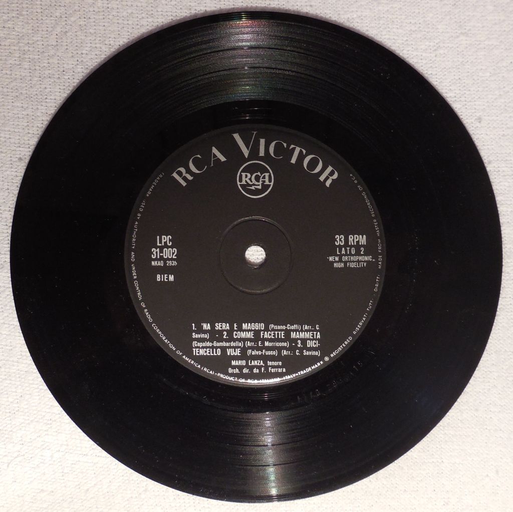 nur zur Ergänzung, die 7 Zoll (18cm) Platten gab es auch mit 33 1/3 Umdrehungen. Ich habe eine Platte von Polydor, da sind auf jeder Seite zwei Lieder.