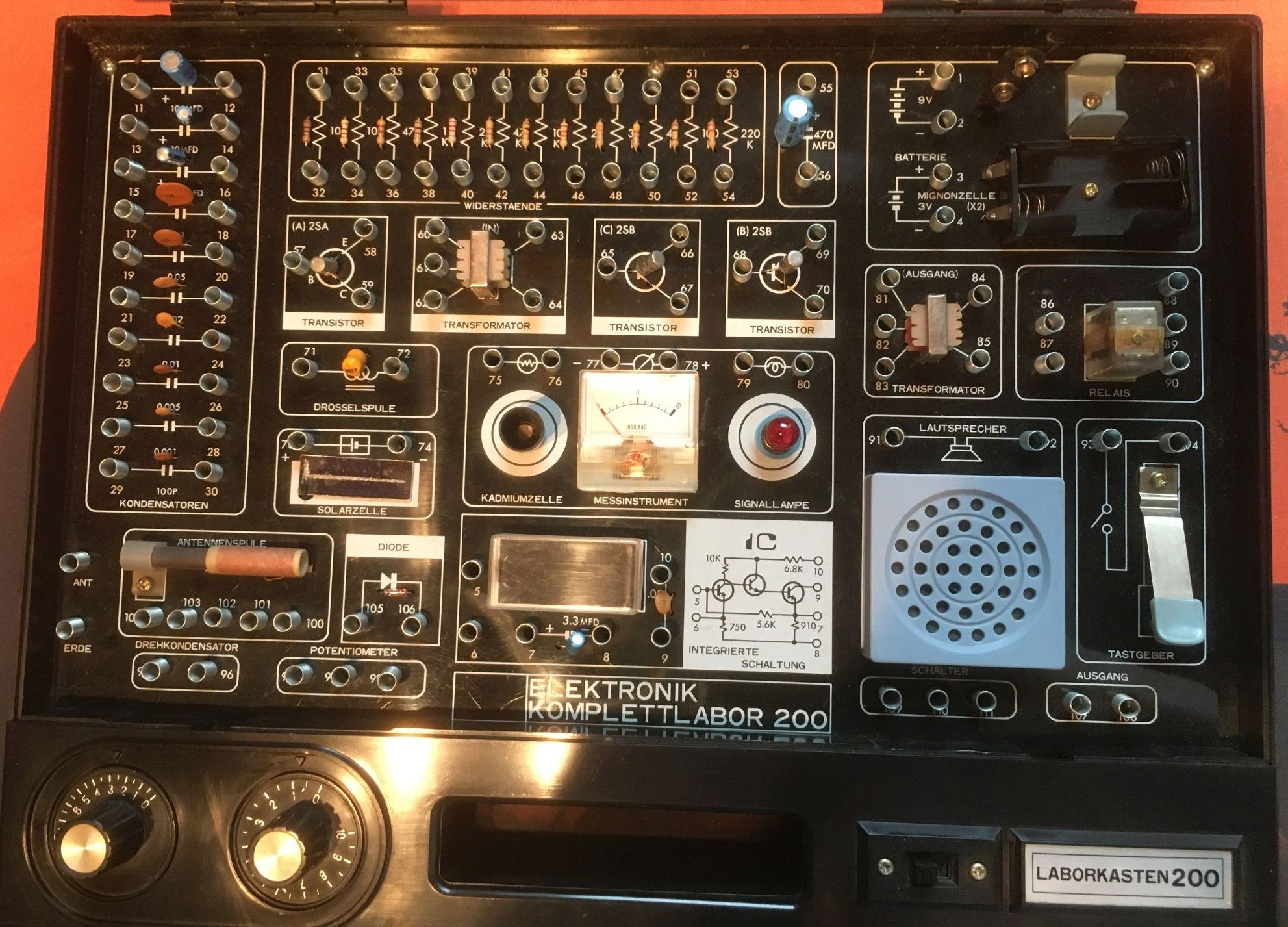 das Lindy Komplettlabor 200 war 1977 als eines der letzten Elektronik-Experimentierkästen hierzulande für 148 DM zu kaufen. Wahrscheinlich war die Nachfrage so gering, dass das Angebot über ein Jahr nicht hinaus ging.