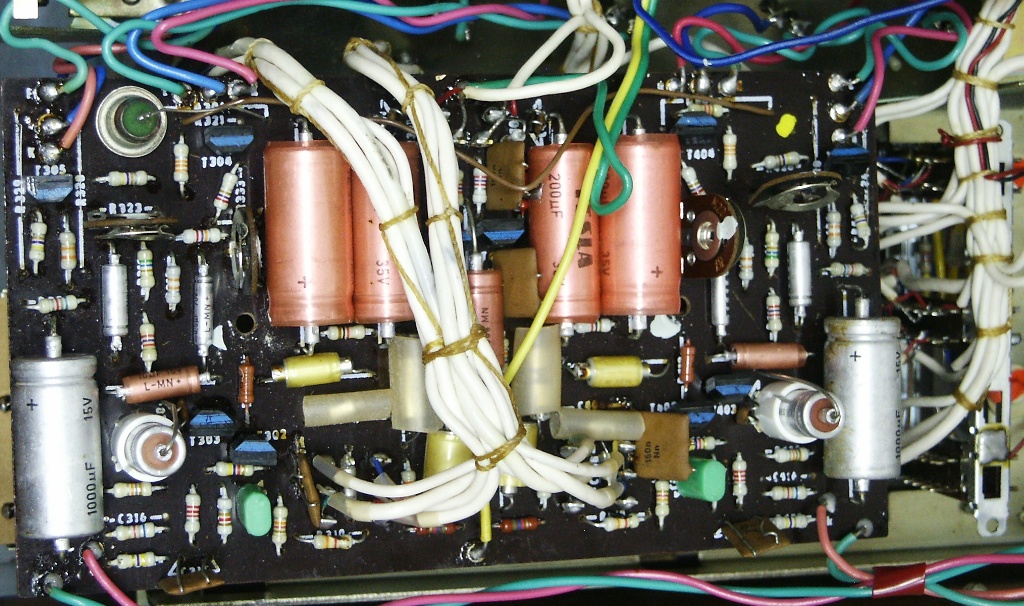 Guten Abend, ich habe bei mir auf dem Tisch ein Spulentonbandgerät Tesla B100 stereo. Ein Kanal, der rechte, verzerrt. Bisher habe ich herausgefunden, dass der Fehler wahrscheinlich in der Endstufe zwischen dem ersten (T401) und zweiten Transistor (T402) liegt. Dort befindet sich wohl auch das Klangregelnetzwerk. Ich habe die Spannungen an den Transistoren der beiden Kanäle verglichen, sie stimmen grundsätzlich überein. In meinem Besitz habe ich einen Schaltplan aus der Zeitschrift radio fernsehen elektronik, Jahrgang 1955, Heft 15, ebenso eine originale Serviceanleitung von Tesla. Dort ist ebenso ein Schaltplan und Bauelementelageplan enthalten. Leider passen diese Pläne nicht zu dem hier verbauten Verstärker. Es scheint eine Weiterentwicklung zu sein. In meiner Endstufe sind pro Kanal 5 Stck. KC148 und 4 Stck. KU611 verbaut.