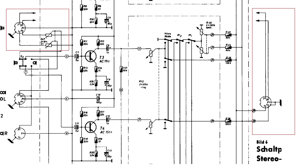 Irgendwas war da mit dieser Ausgangsbuchse, welche wieder mit der Radio Buchse verbunden ist, da stimmt die Ausgangsnorm nicht mehr, ich glaube ich habe diese Verbindung damals abgelötet und die Ausgangsbuchse nach Norm beschaltet, genau weiß ich das aber nicht mehr. Oder es war die Radiobuchse, wo Pin 3 und 5 direkt zur Ausgangsbuchse gehen.
