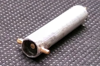 Ich weiss noch immer nicht, wie die Reichhalter-Stecker heissen und ob man sie noch irgendwo erwerben kann. Zwei Buchsen habe ich praktischerweise im Gerät gegen eine 6,3mm Monoklinke ausgetauscht. Weil die Demontage auf der gegenüberliegenden Seite zu schwierig war, habe ich die Buchsen belassen. Es ergab sich nun, dass ich eine Drahtaufnahme (schwyzer deutsch zu Weihnachten für die ausgewanderte Verwandtschaft in Oregon) komplett in einen mp3-File übertragen möchte, wofür aber der Stecker fehlt. Ich habe ihn aus einem Aluminium-Antennenstrahler 8 mm Aussendurchmesser und 2 mm Messing-Vollmaterial hergestellt. Die Wandungsstärke darf nicht zu dick sein, sonst gibt es einen Kurzschluss, übliches Profilmaterial scheidet deswegen aus: