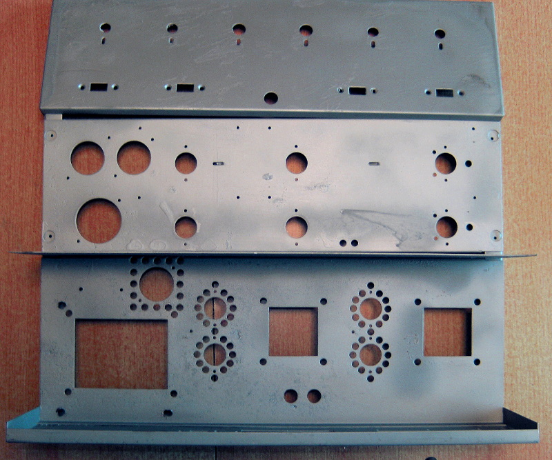 Bevor der Denksport losgeht, also der Neuaufbau der Endstufe mit Anpassung an die vorhandene Vorstufe ein Bild vom fertig entrosteten Chassis. Das ganze mit Zinkspray behandelt. Im Gegensatz zu Friedrich, der ein hervorragender Restaurator istbin ich mehr der Instandsetzer oder Tuner Das Netzteil hat mehr "Bums", also stärkerer Netztrafo, SI Dioden Brücke, mehr als doppelte Siebkapazität. Das wirkt sich auf den Klang aus, aber aufgrund der Zerstörung eines Teils der Endstufe und fehlenden Schaltbildes kann ich das Gerät nicht wieder originalgetreu aufbauen. Leider konnte ich aus den Resten die Schaltung nicht richtig rekonstruieren. Außerdem hätte ich auch bei intakten Gerät eine Änderung vornehmen müssen: Der Netzschalter und die schaltbaren Netz - Zusatzanschlüsse waren schon lebensgefährlich, zumindest nach heutigen Standard. Also wieder Bilder, ich war auch fleißig.
